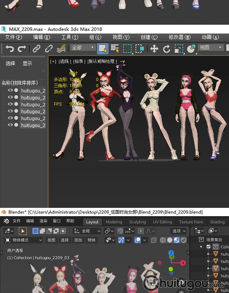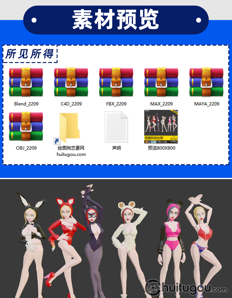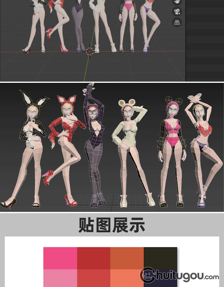 低面静态人物C4D性感美女Blender女郎MAX模特mb OBJ格式nomad可用