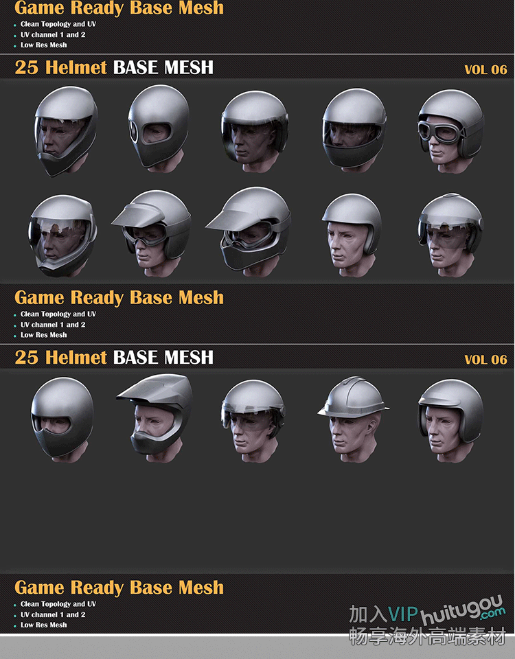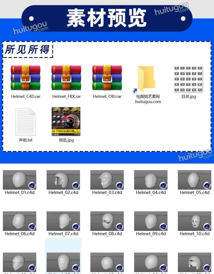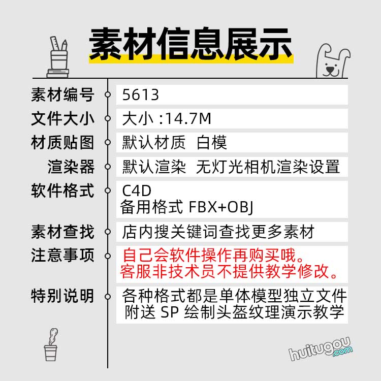 C4D科幻护具头盔3D模型FBX格式OBJ素材文件 送SP绘制头盔纹理教程