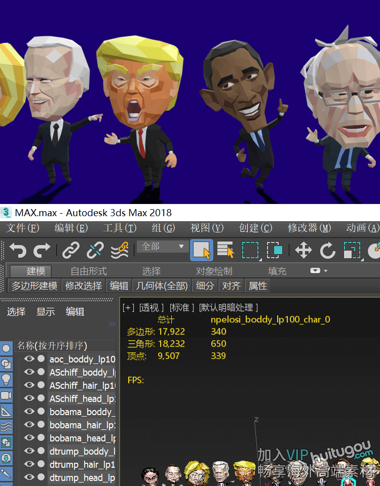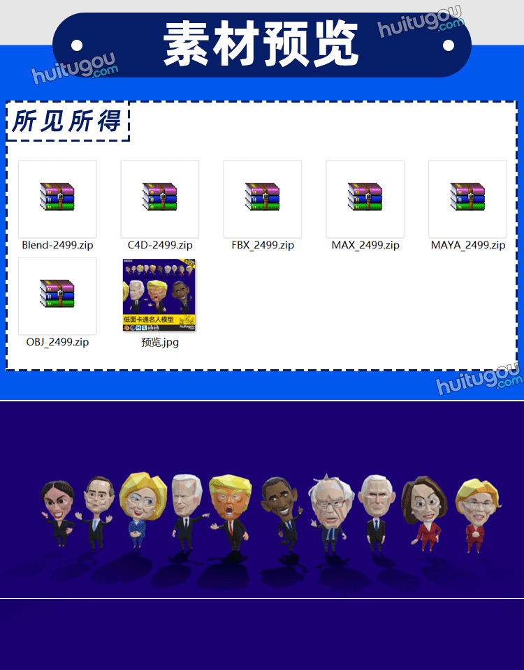 Blender通人物3D模型C4D低面lowpoly卡通风格MAX素材MAYA格式OBJ