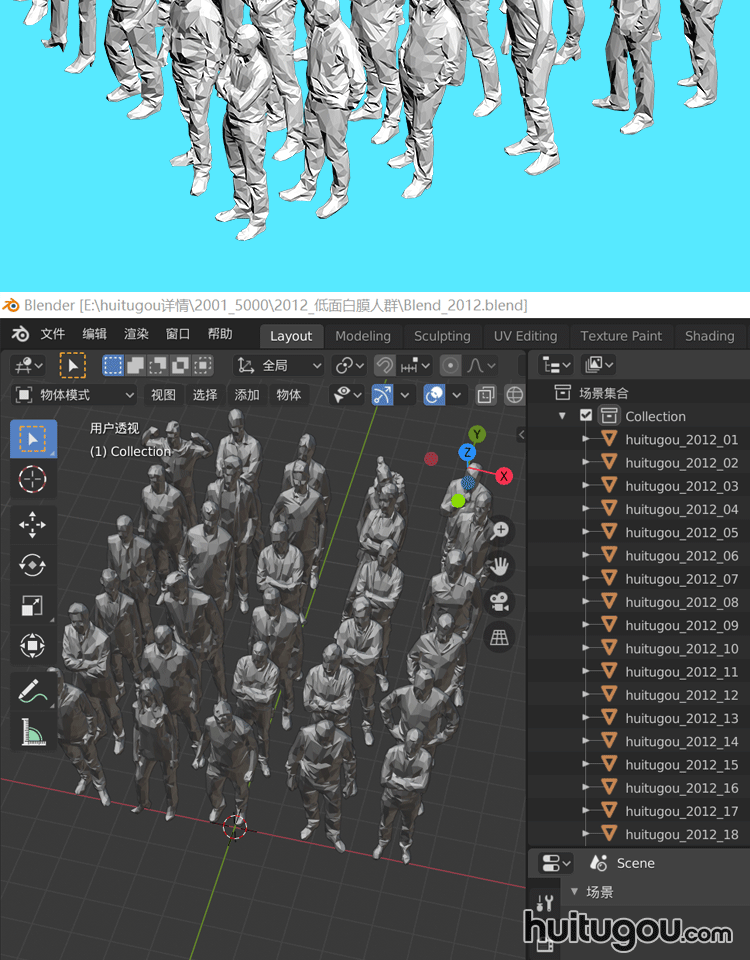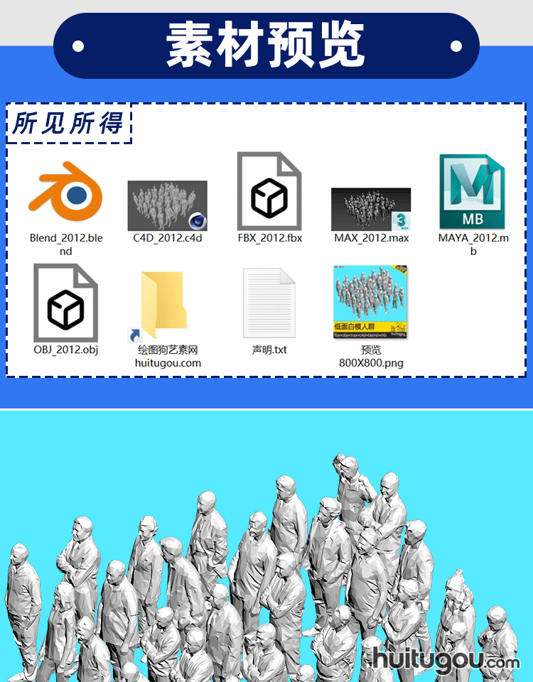 30个 低面角色C4D模型Blender抽象站姿人物白膜OBJ FBX MAX 素材