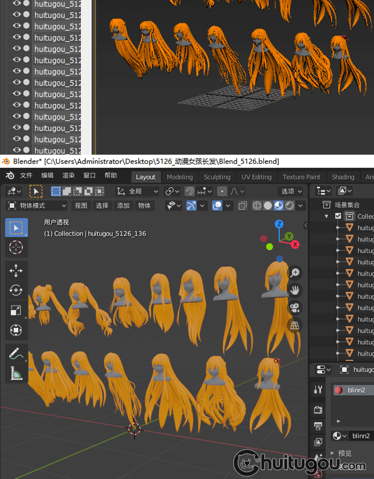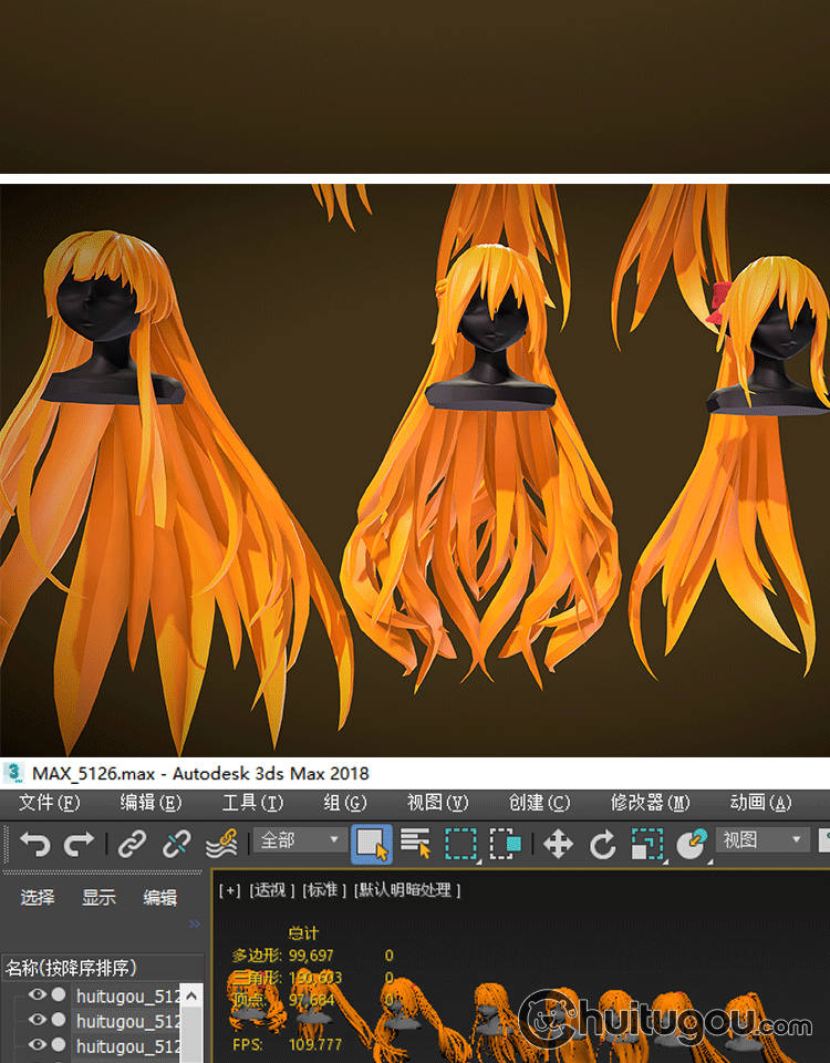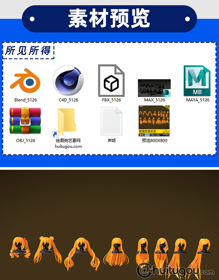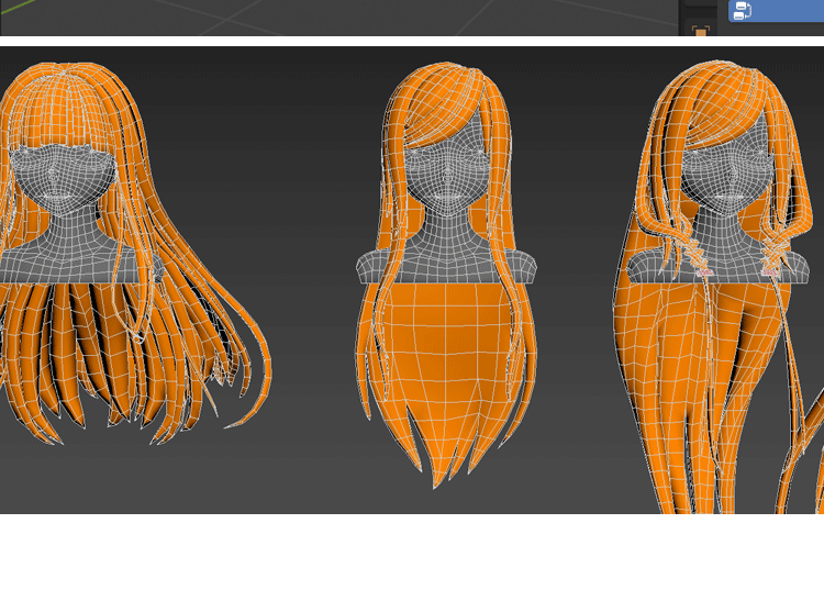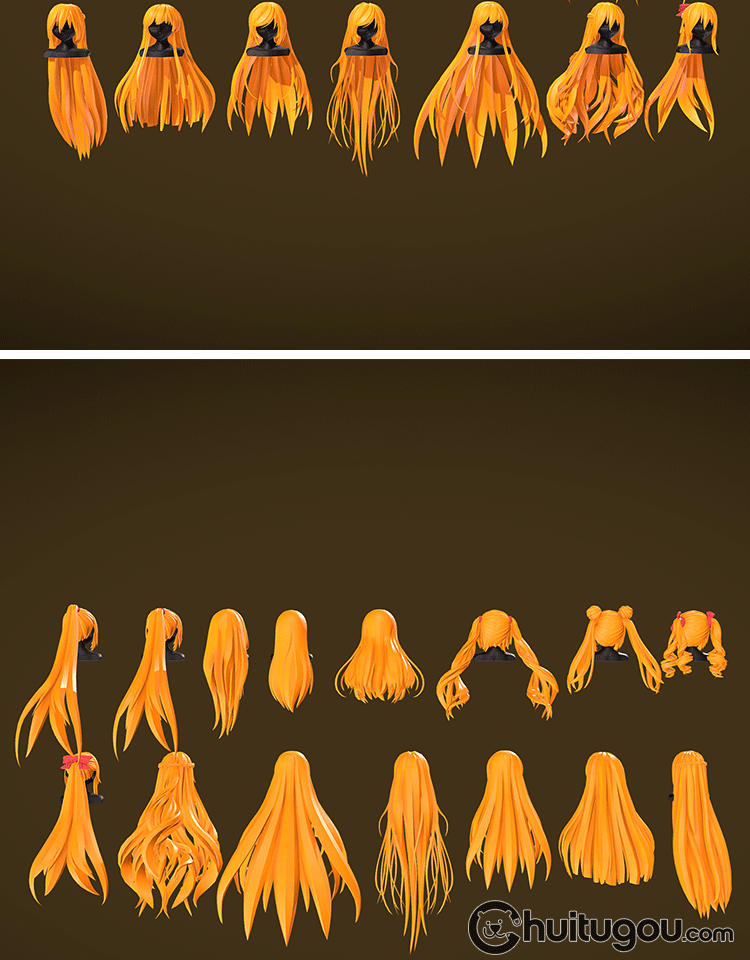 卡通女孩发型C4D长头发Blender萝莉MAX OBJ格式ZBrush nomad可用