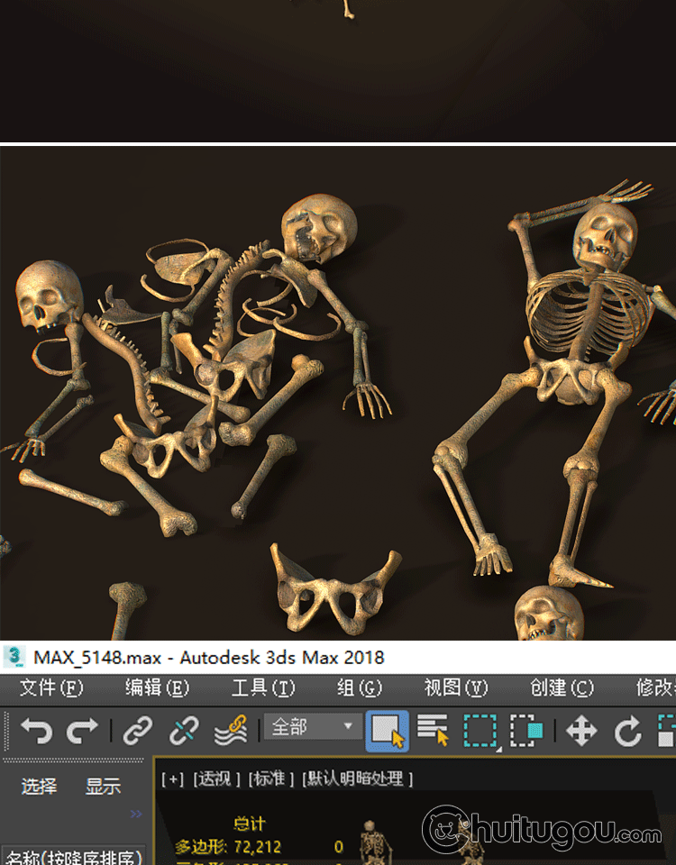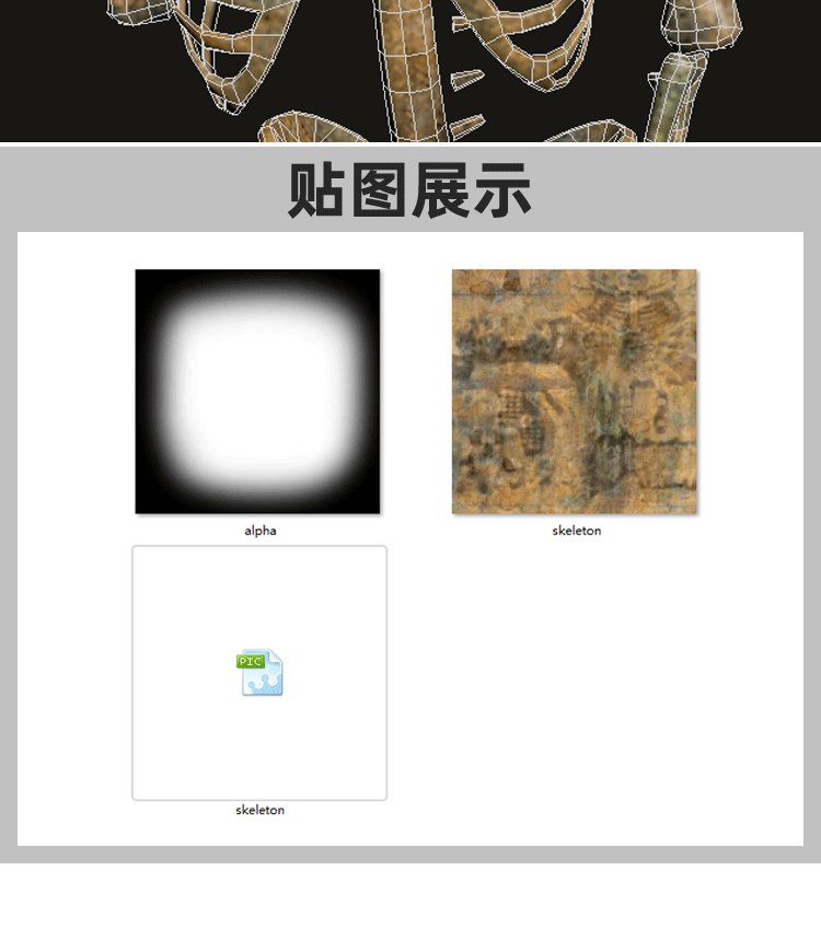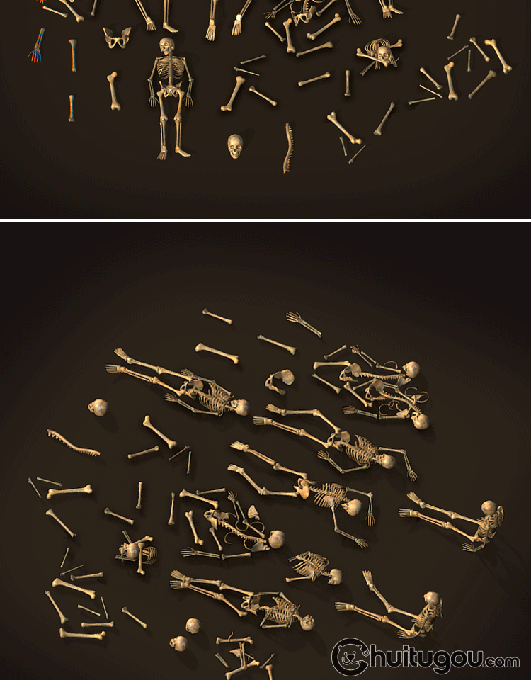 人类遗骸骨架C4D模型MAX头骨OBJ墓地头颅骨骼FBX格式3D素材源文件