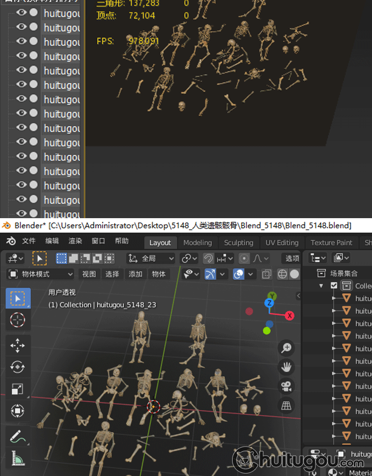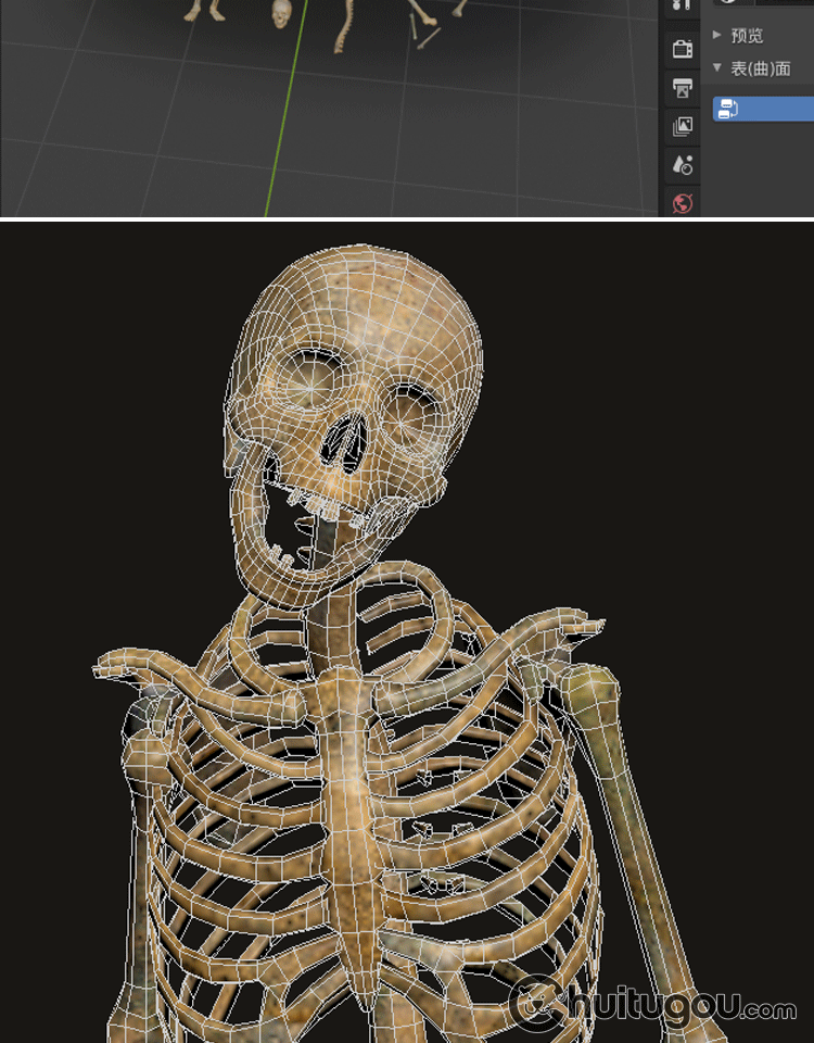 低多边形 地牢骸骨C4D残骸Blend卡通骨骼脊柱骨头FBX OBJ素材文件