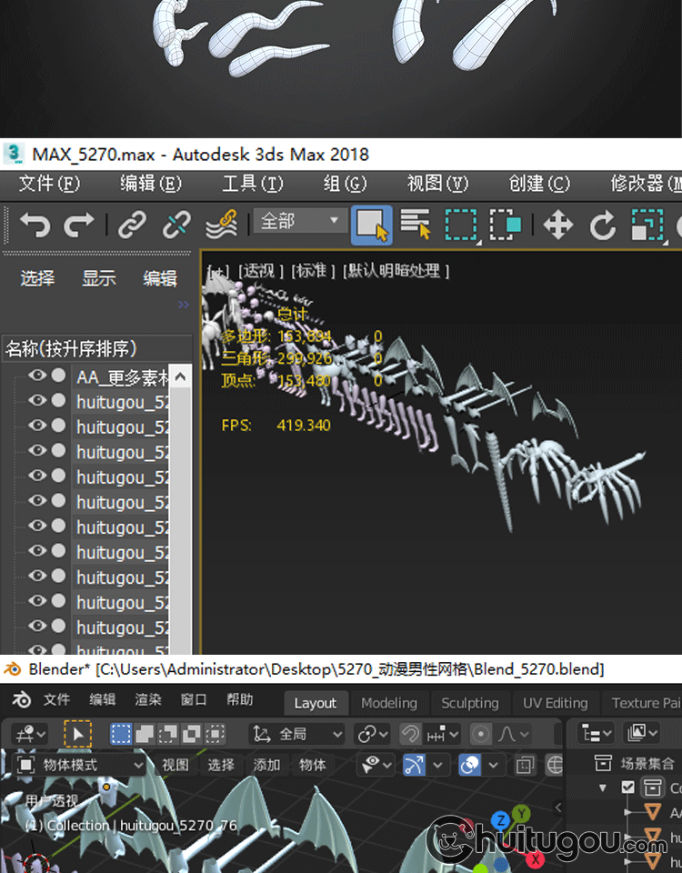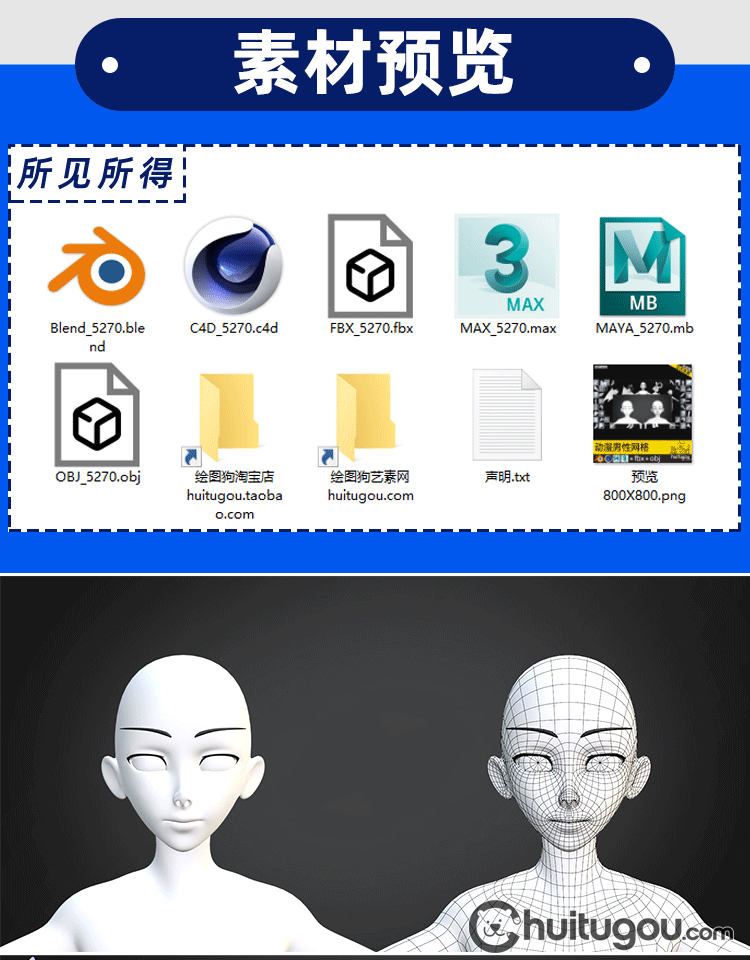 Blender低面男女人物角色基础网格MAX模型FBX格式OBJ白模建模雕刻