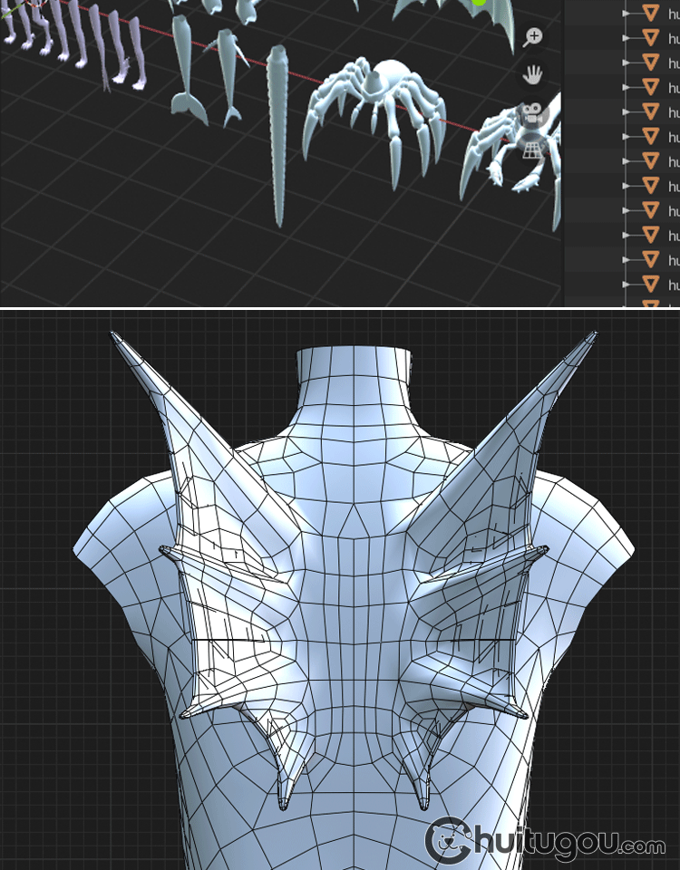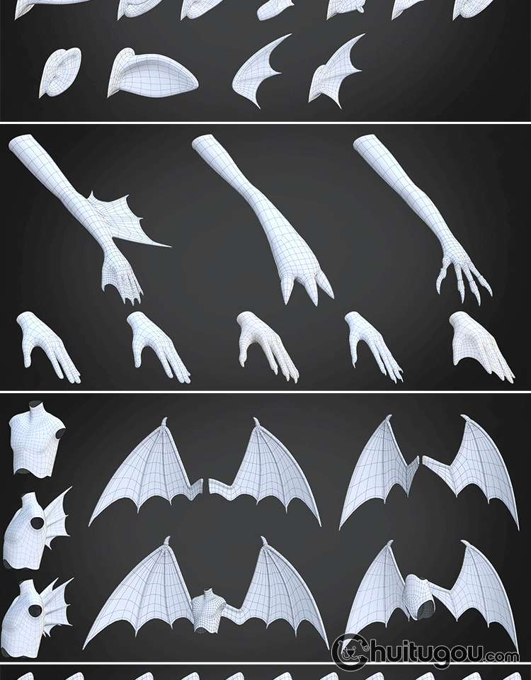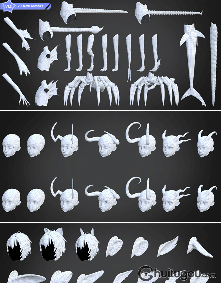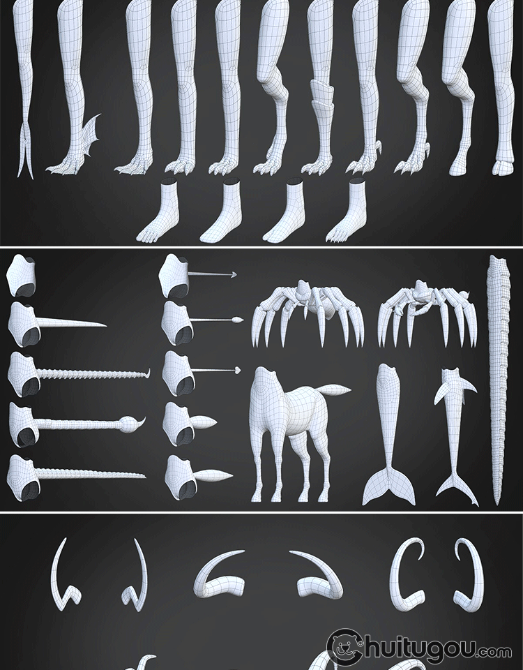 动漫女性角色基础网格C4D肢体组件Blend翅膀手脚头发耳朵尾巴OBJ
