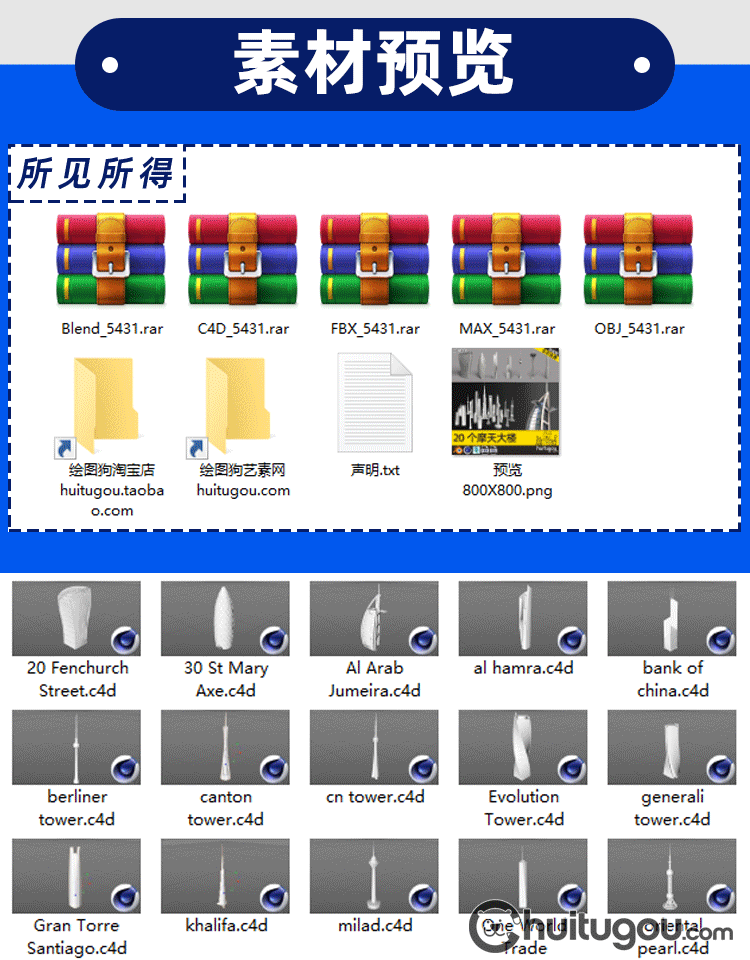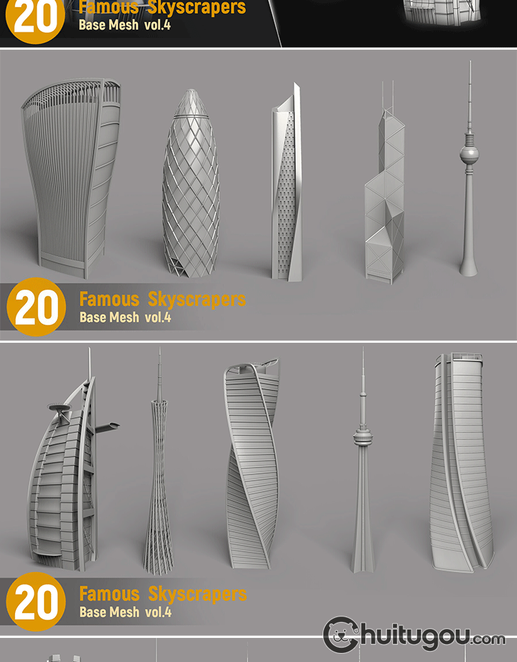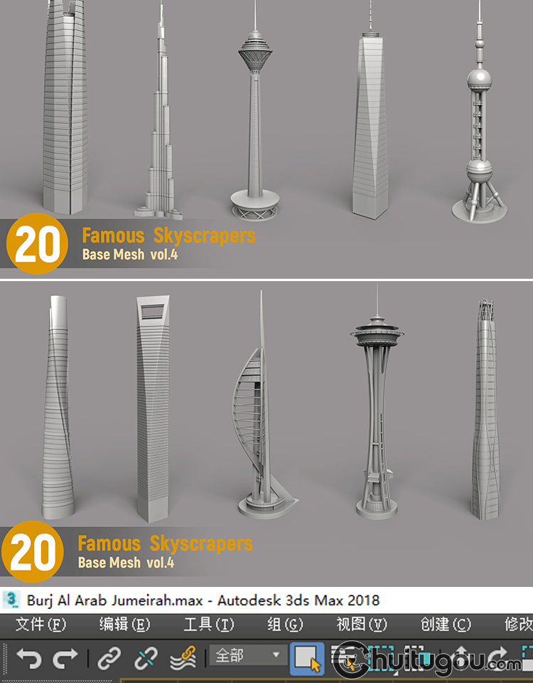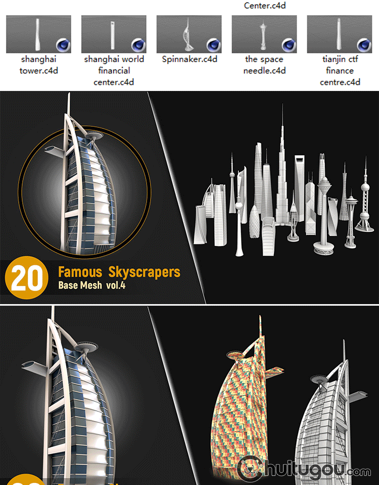 世界著名地标建筑C4D摩天大楼MAX帆船酒店小蛮腰哈利法塔东方明珠