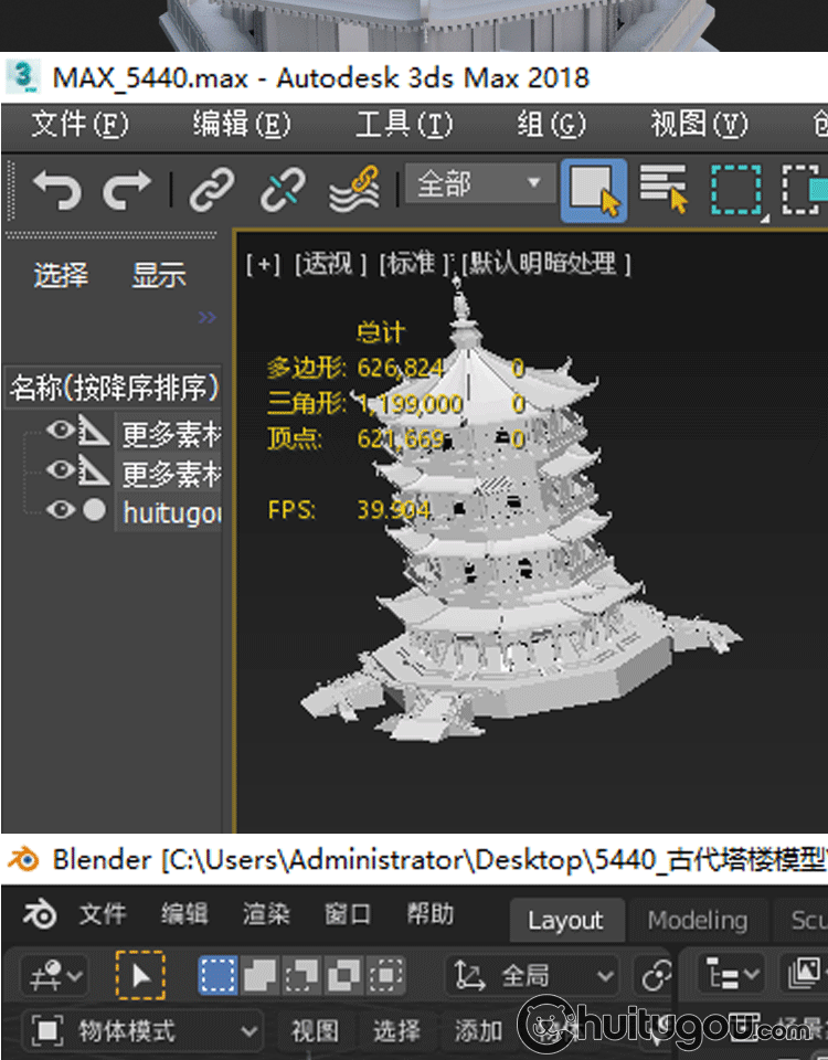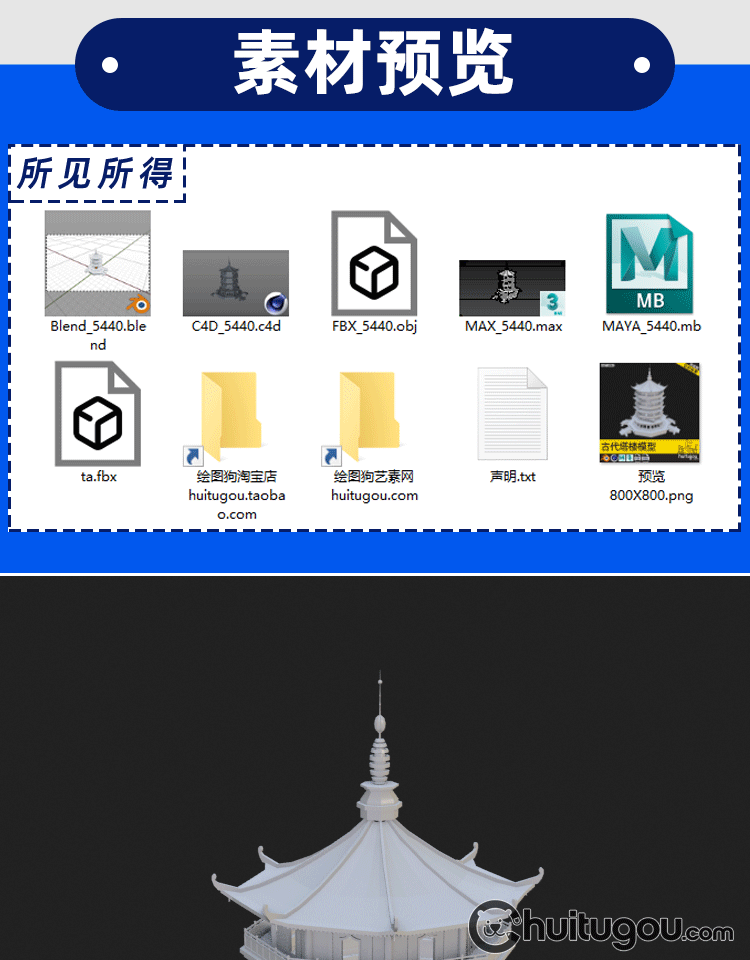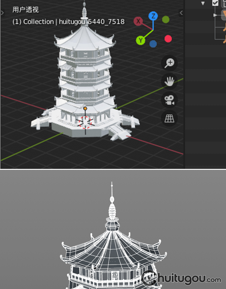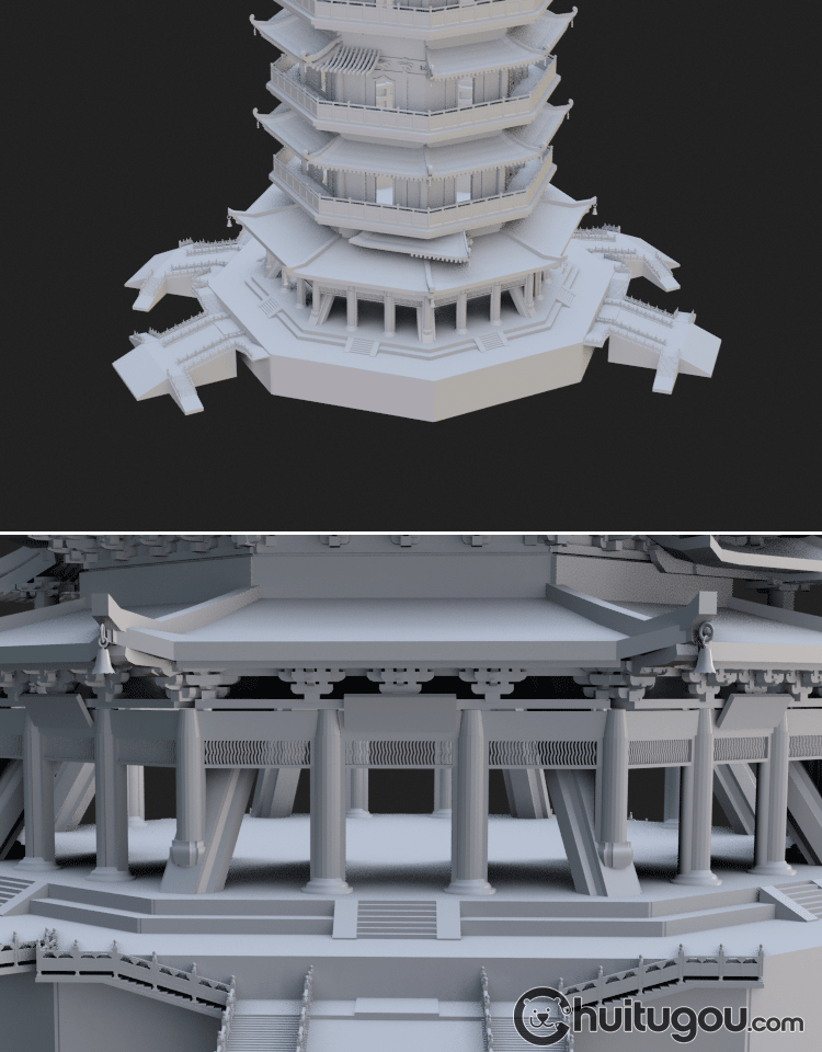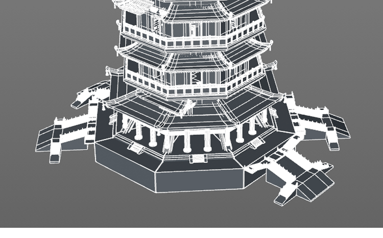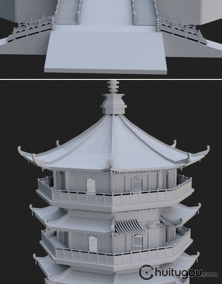 C4D古风建筑塔楼Blend八角楼模型MAYA低模白模3D建模设计素材OBJ