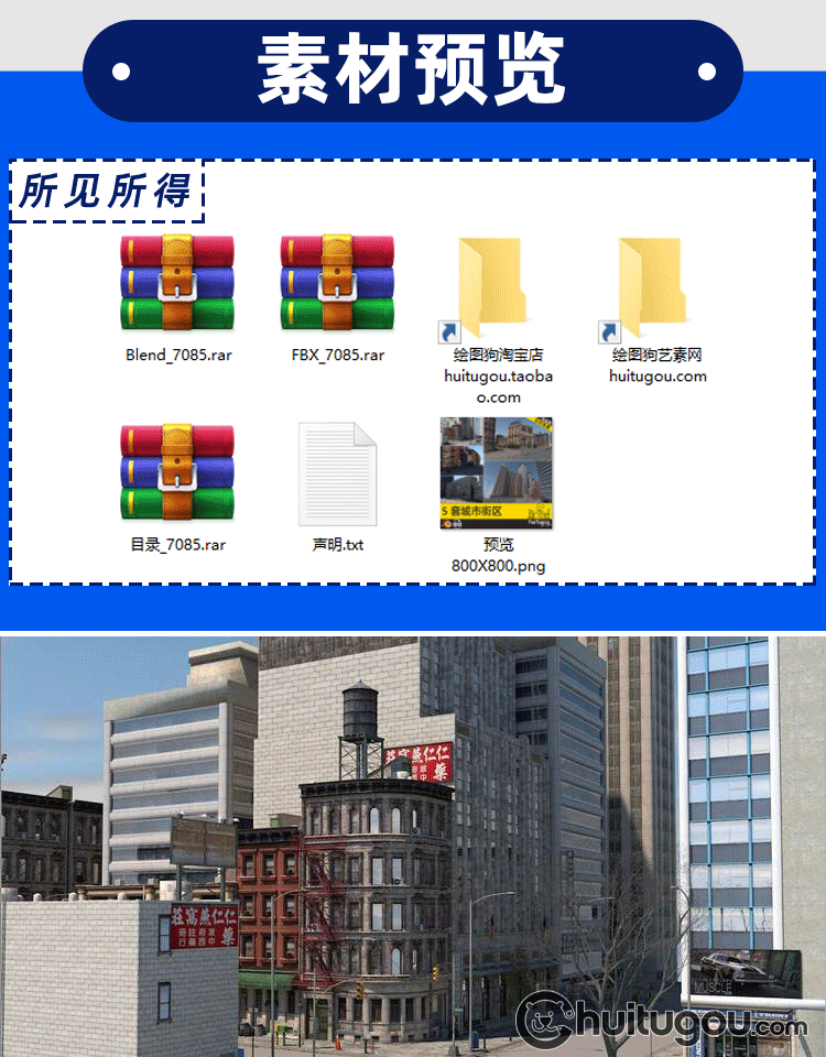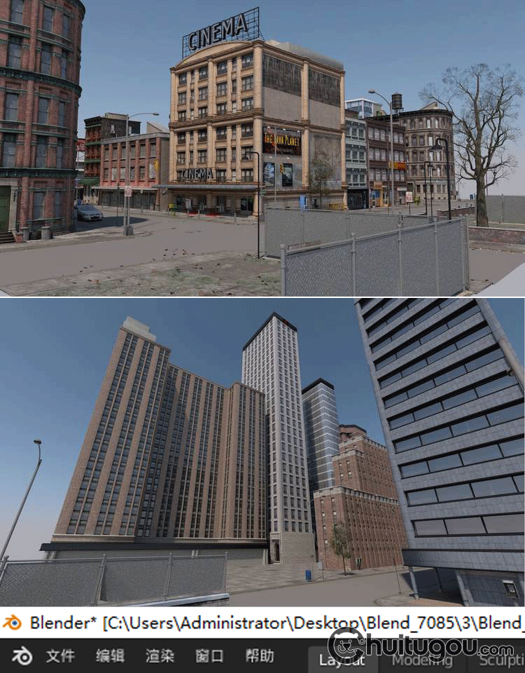 年代老旧城区建筑场景Blender复古城市街道街区FBX房屋大楼3D素材