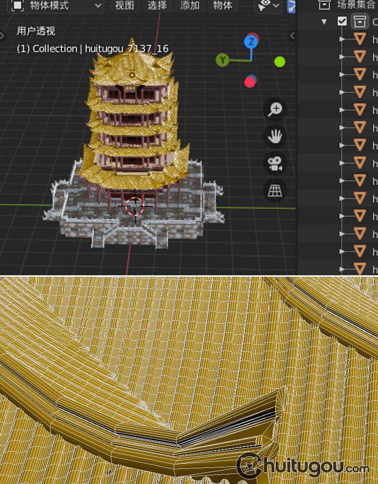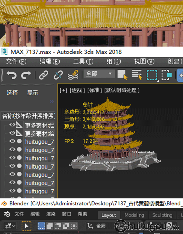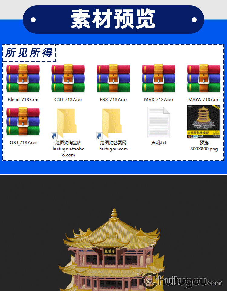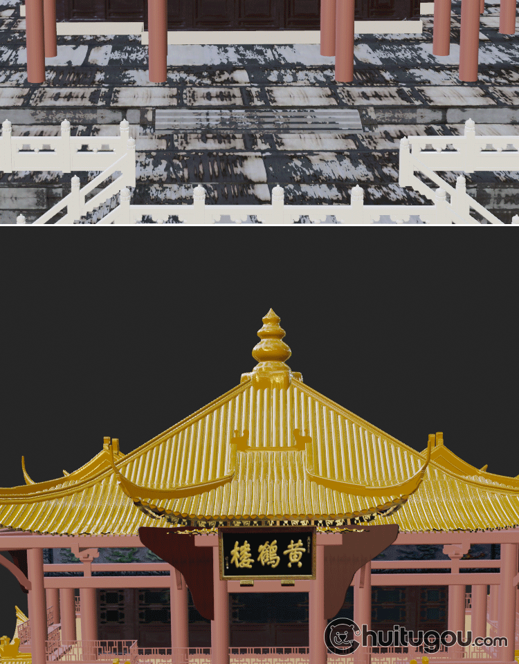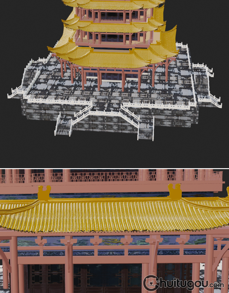 C4D中式古风建筑黄鹤楼3D模型MAYA建模FBX渲染设计素材源文件OBJ
