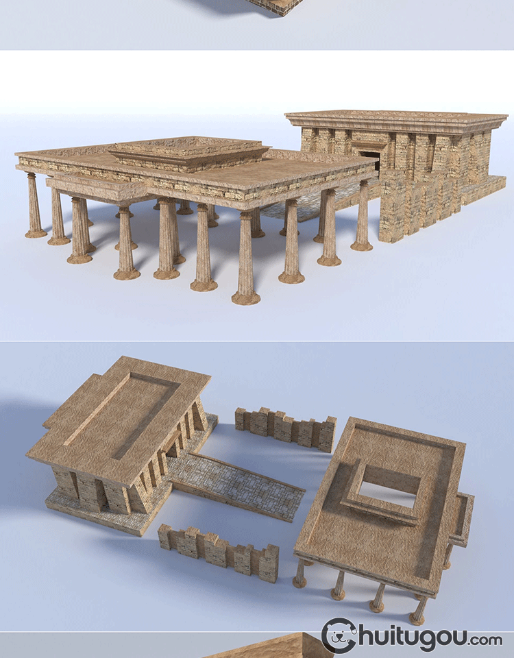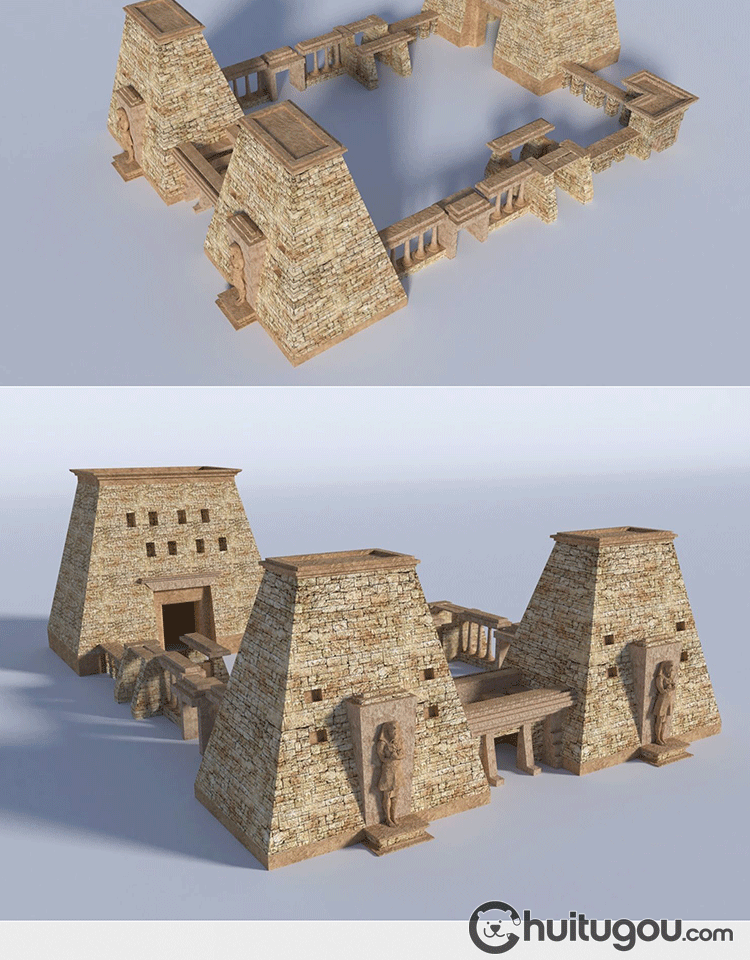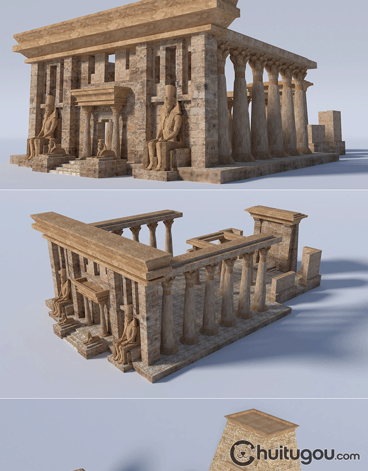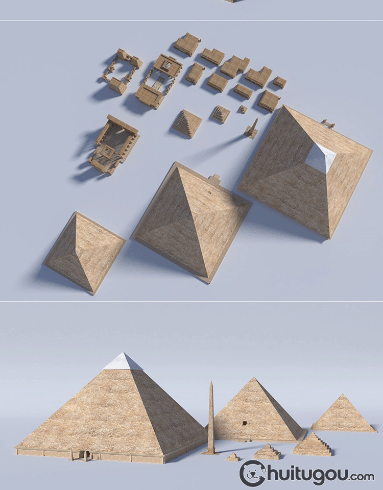 PBR古埃及法老建筑C4D金字塔模型Blend低模宫殿遗址MAX建模渲染mb