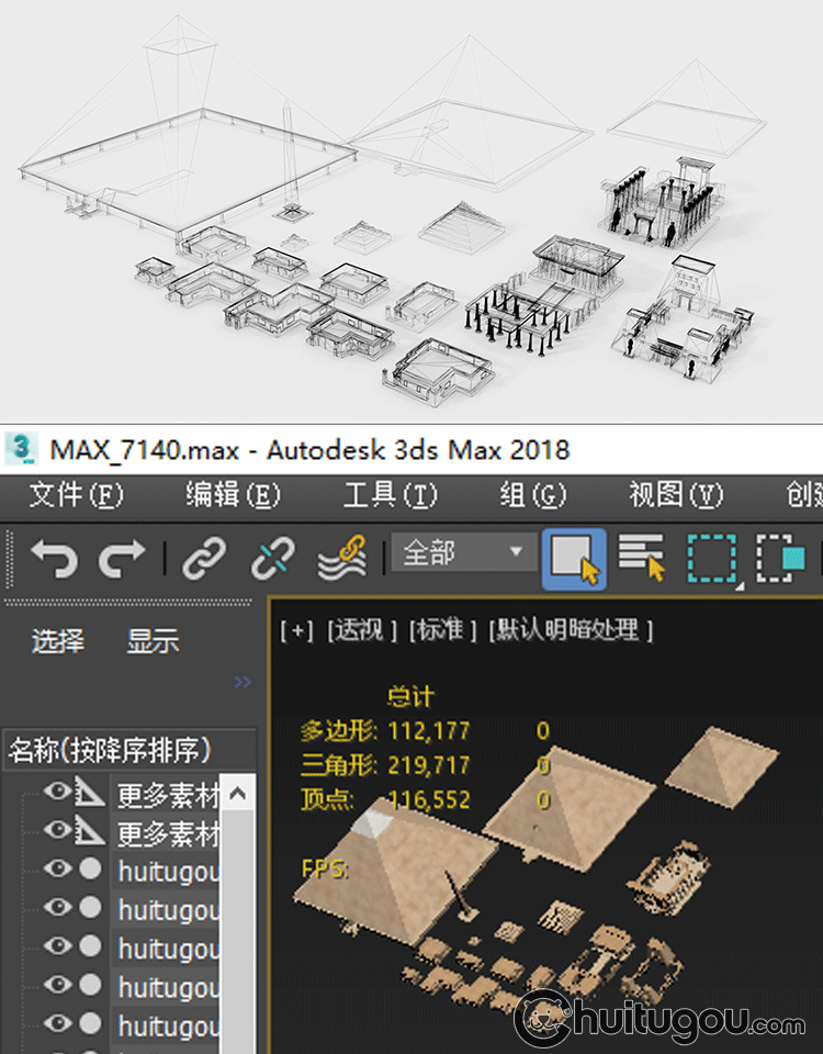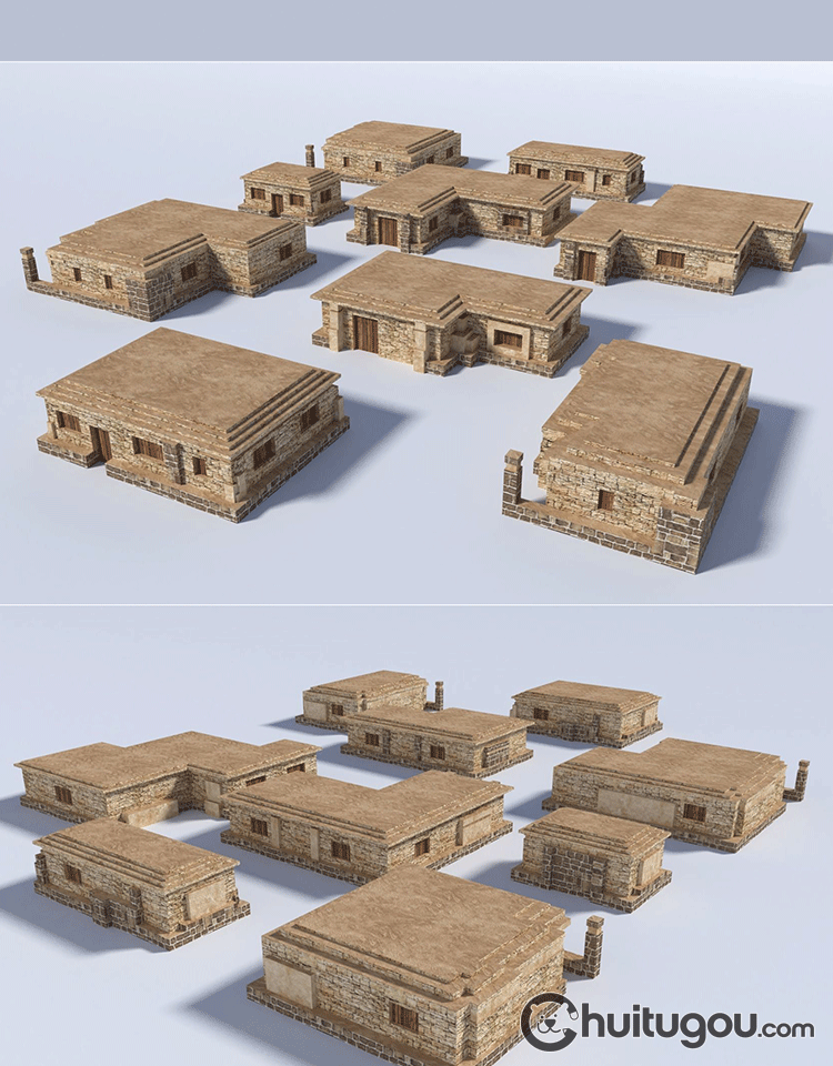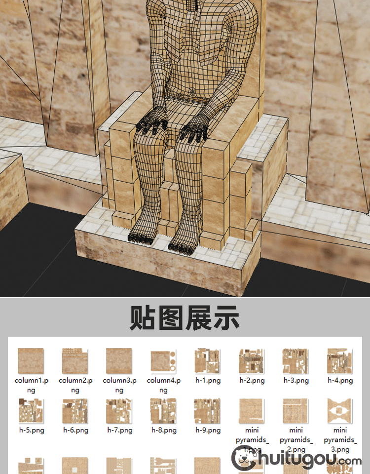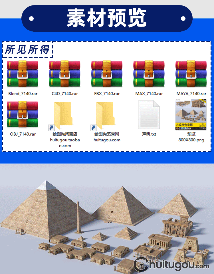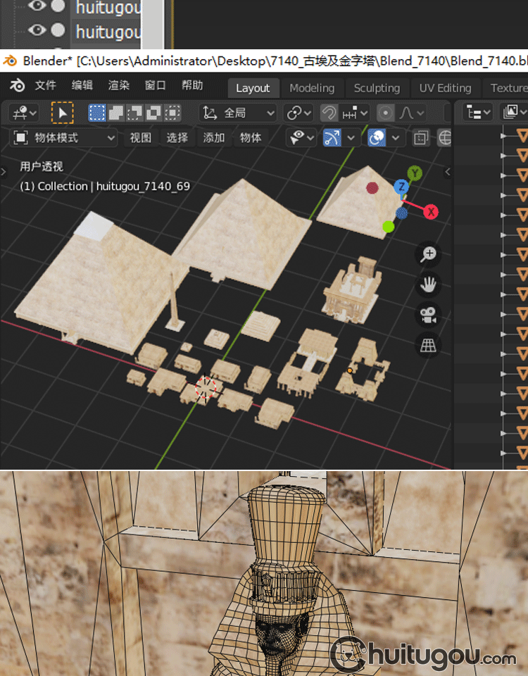 PBR古埃及法老建筑C4D金字塔模型Blend低模宫殿遗址MAX建模渲染mb