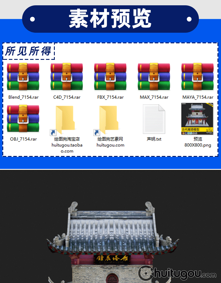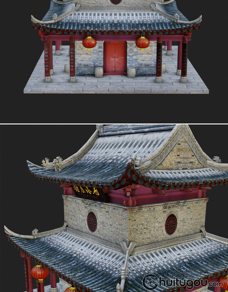 Blender古代雁塔建筑模型C4D古风写实低模MAYA三维素材FBX源文件
