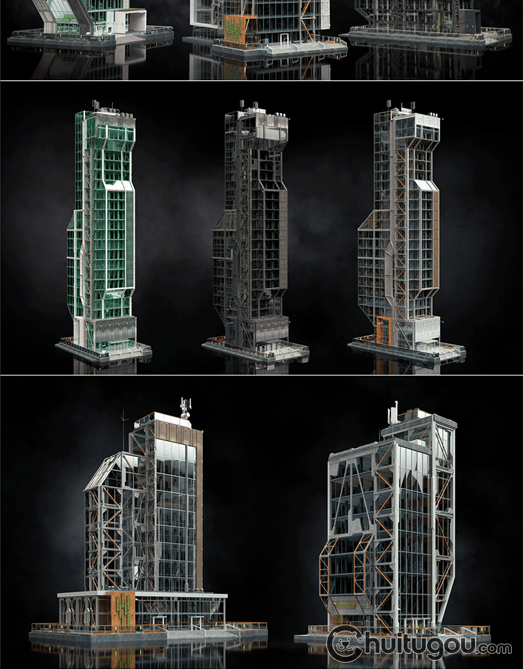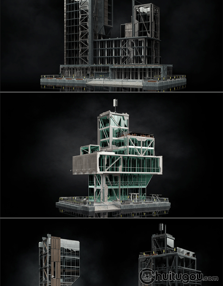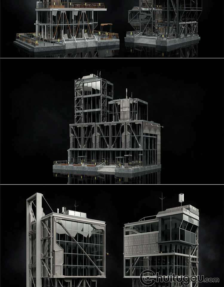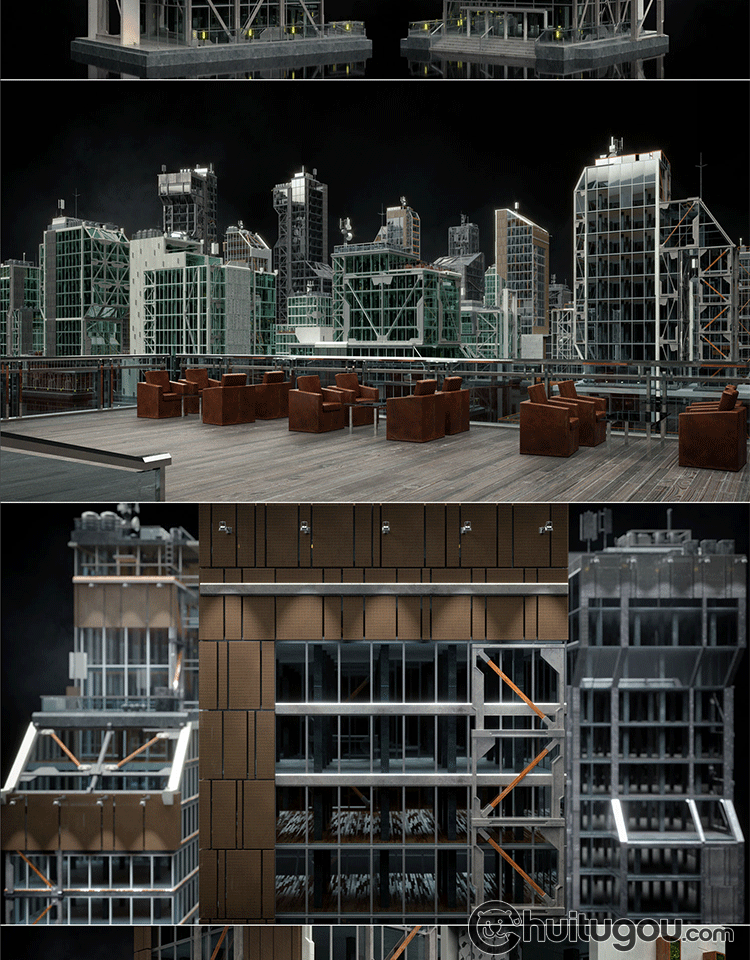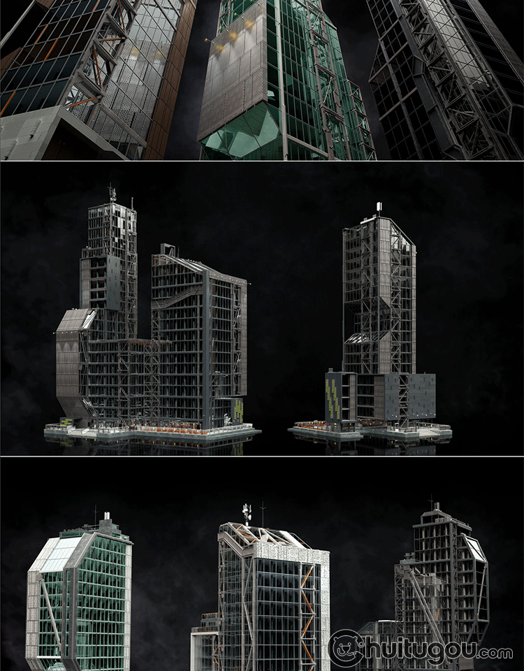 Blender写实PBR重金属风格FBX科幻工业城市建筑楼房3D建模渲染C4D