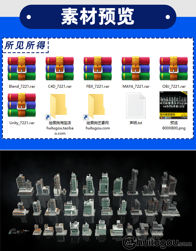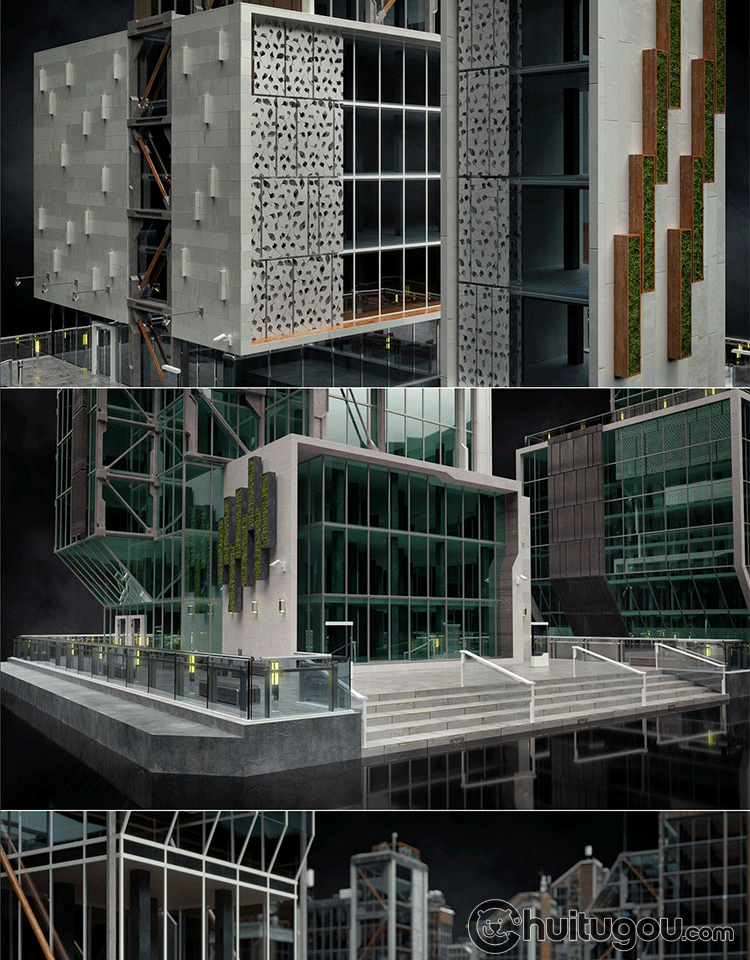 C4D写实现代城市幕墙建筑写字楼MAYA商业大楼FBX三维建模渲染素材