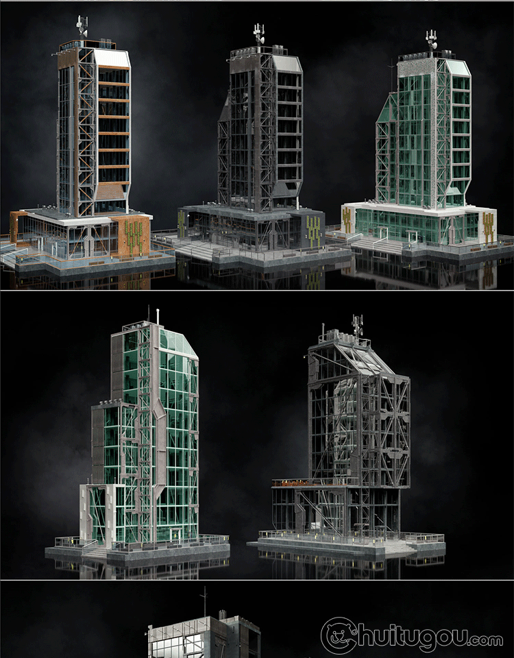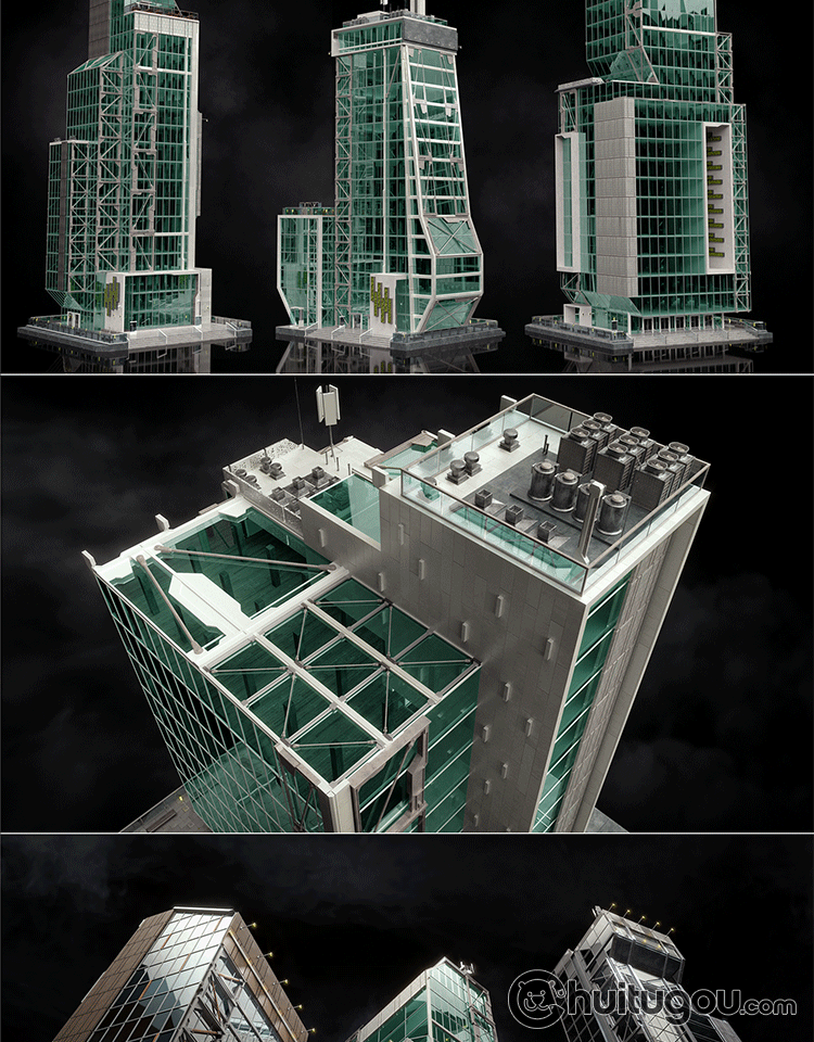 写实现代摩天大楼C4D超高建筑模型CBD写字楼FBX建模渲染3D素材OBJ