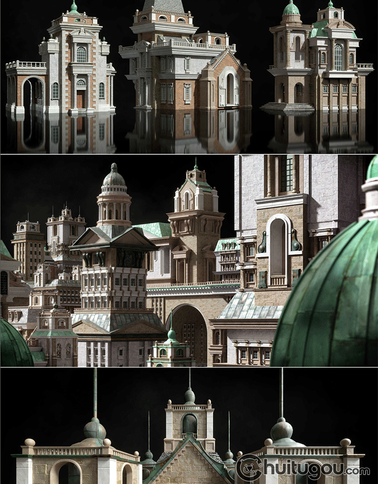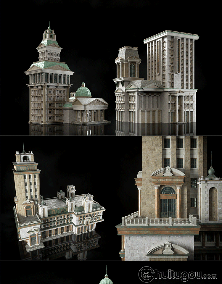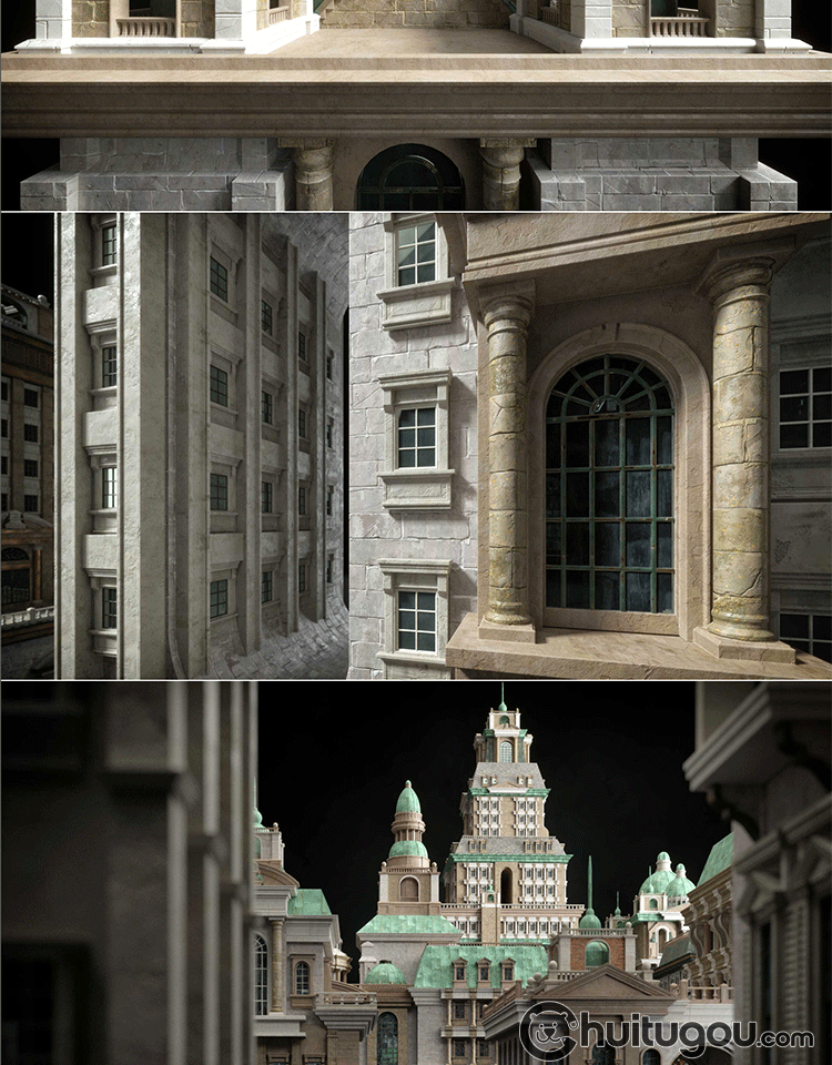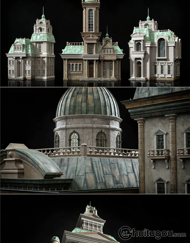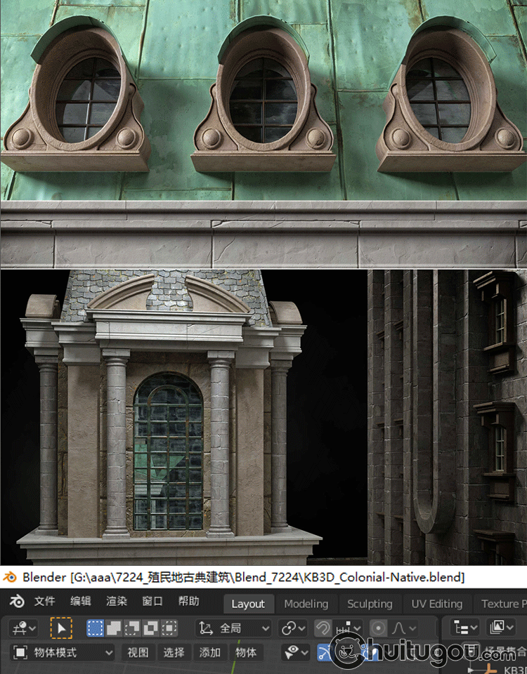 Blender殖民地古典风格欧洲PBR建筑3D模型FBX楼房UE4建模渲染素材