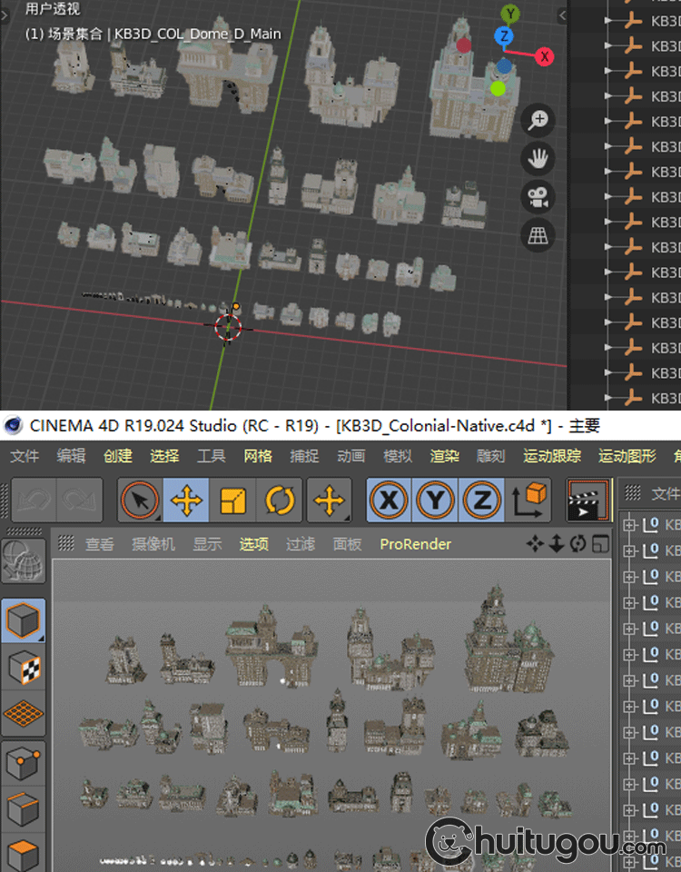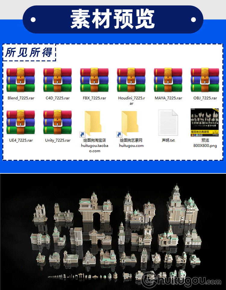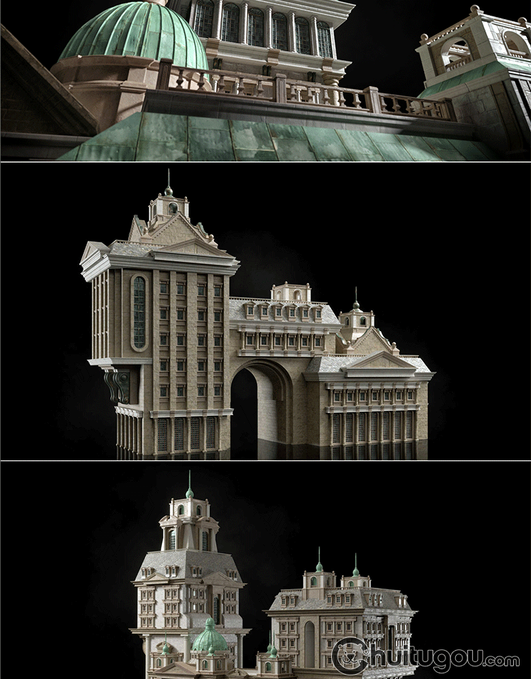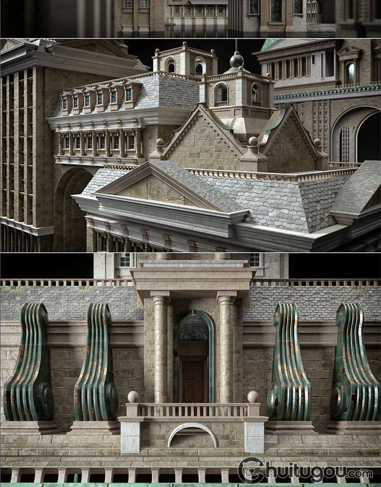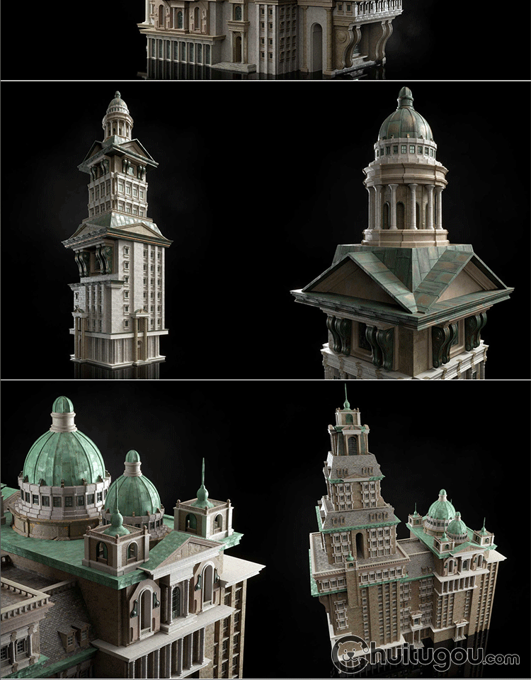 Blender殖民地古典风格欧洲PBR建筑3D模型FBX楼房UE4建模渲染素材