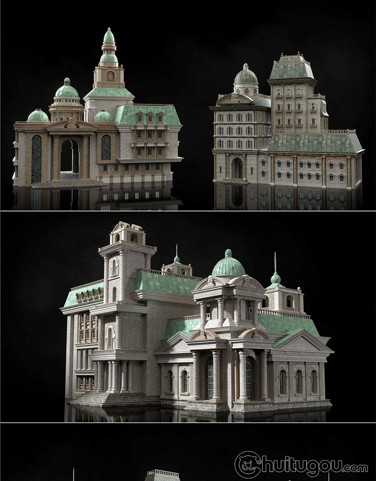 Blend艺术古典风格建筑C4D写实欧式古堡庄园楼房FBX建模渲染素材