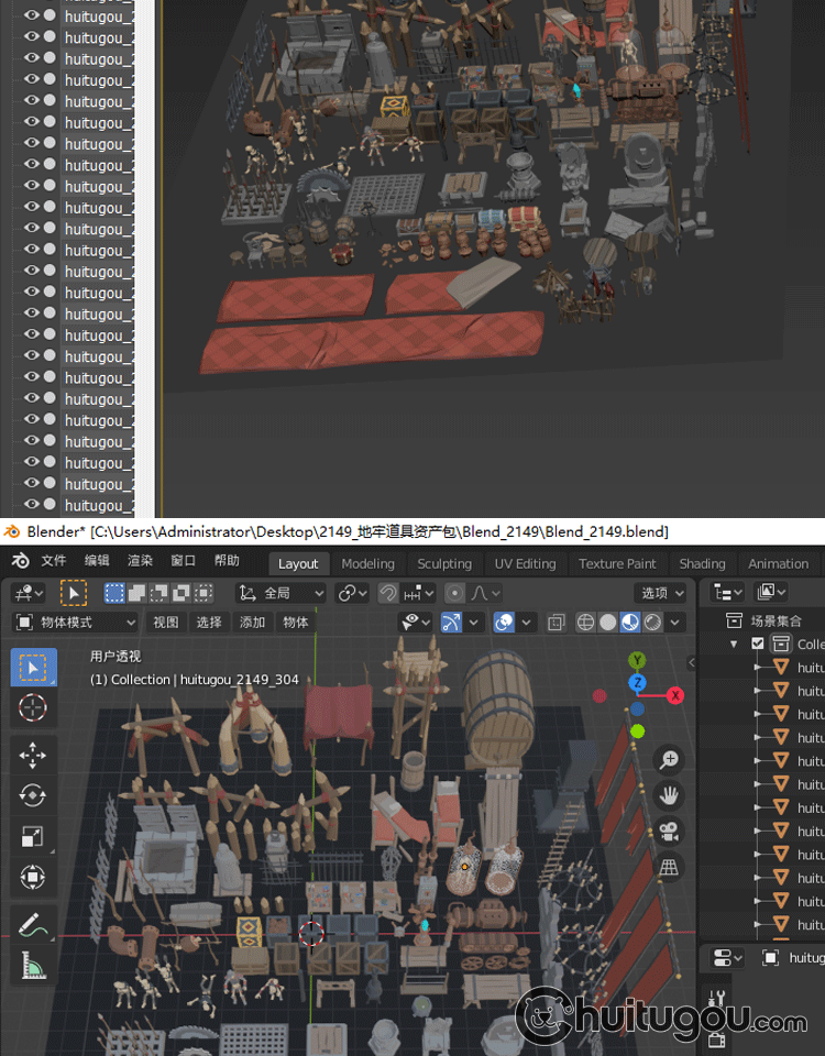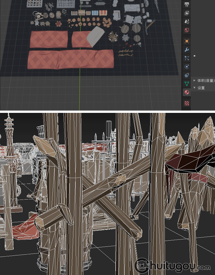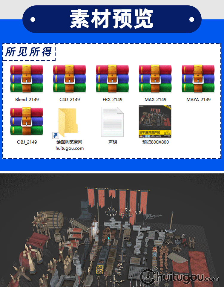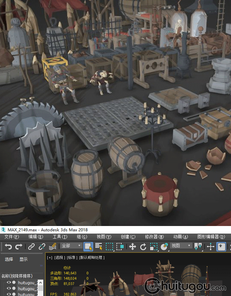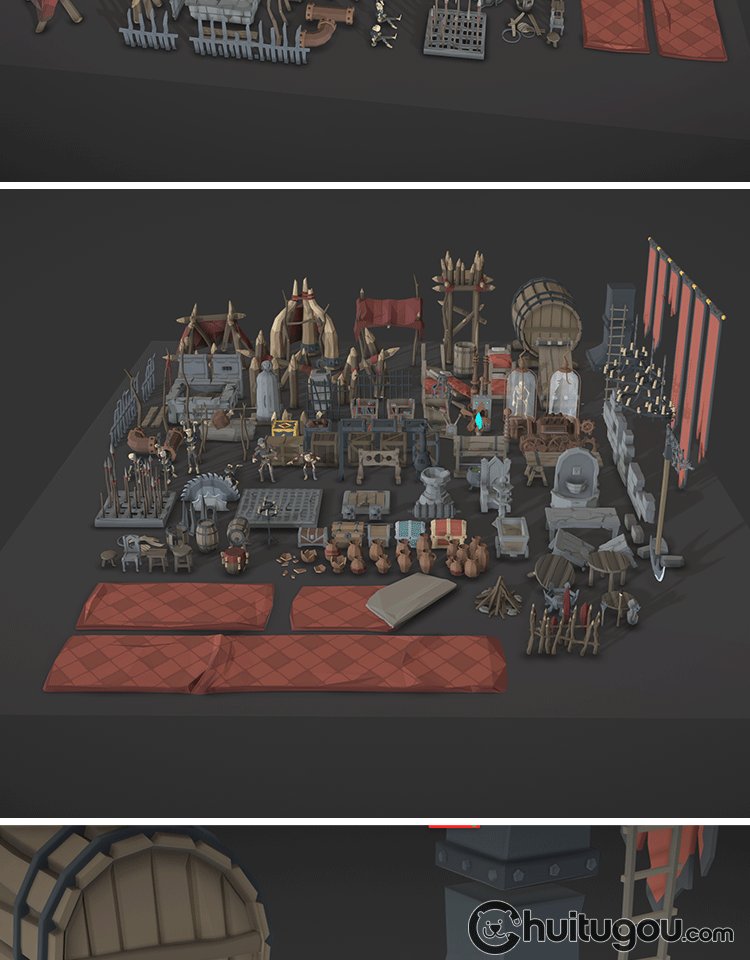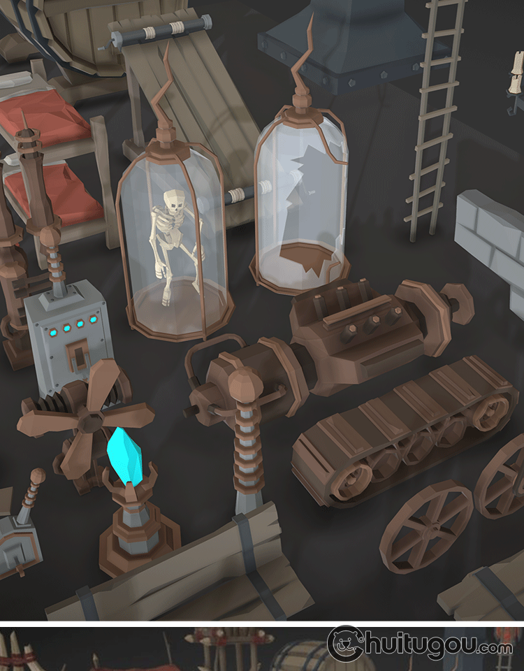 中世纪游戏地牢道具MAX古风模型素材MAYA骸骨箱子牢笼Blender OBJ