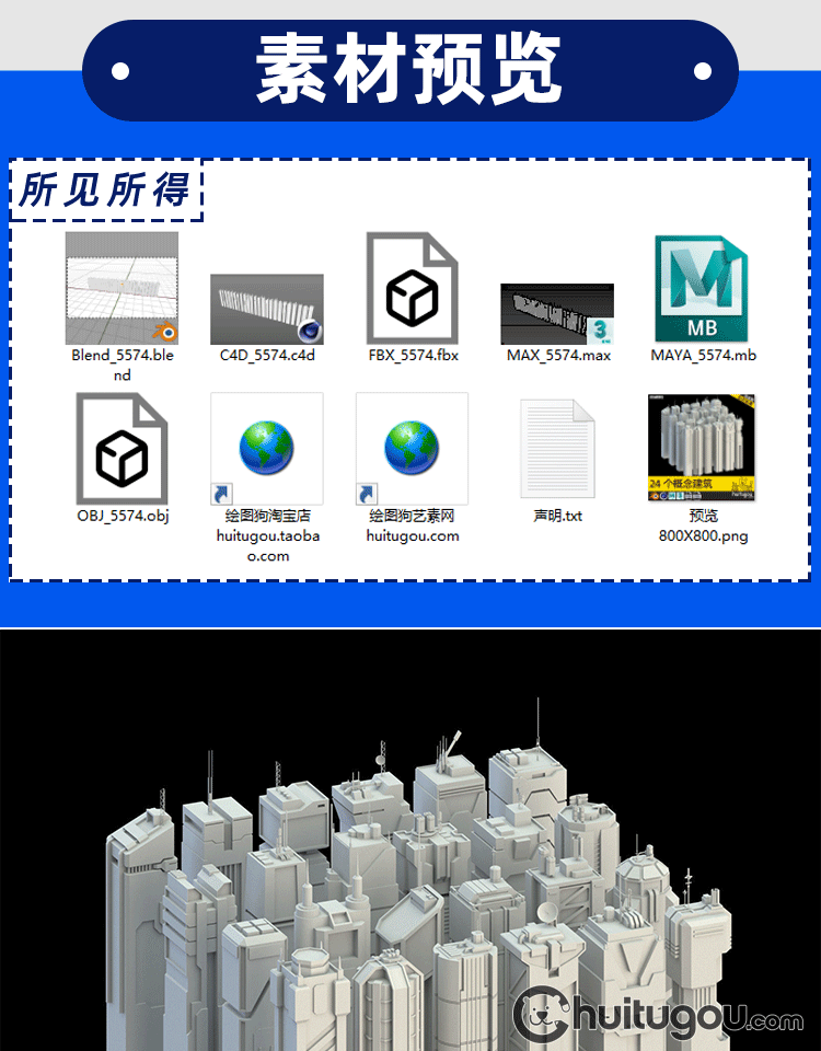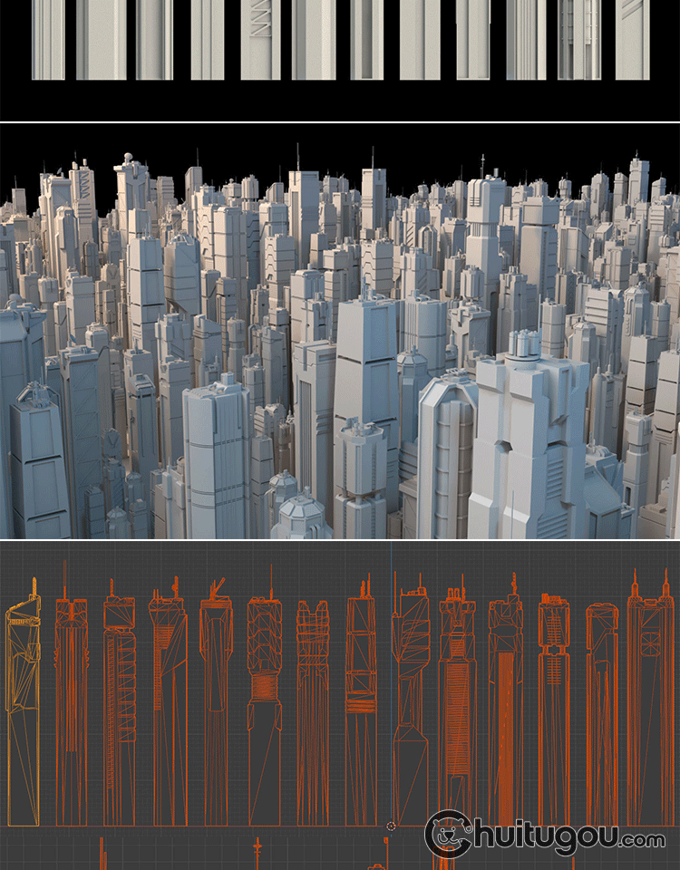 MAX科幻未来建筑模块3D模型Blend基础白模C4D建模渲染FBX素材OBJ