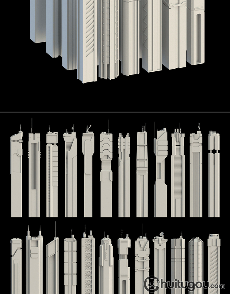 Blend科幻未来概念建筑3D模型MAX摩天大楼FBX白模OBJ建模渲染素材