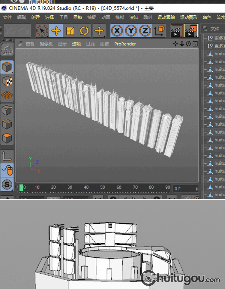 科幻现代城市建筑3D模型C4D摩天大楼FBX高楼大夏OBJ建模设计素材