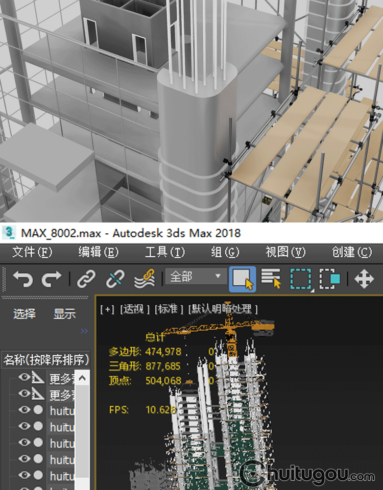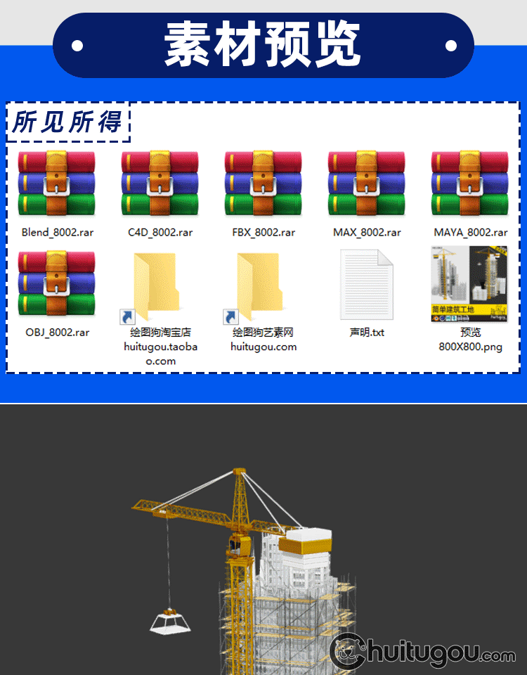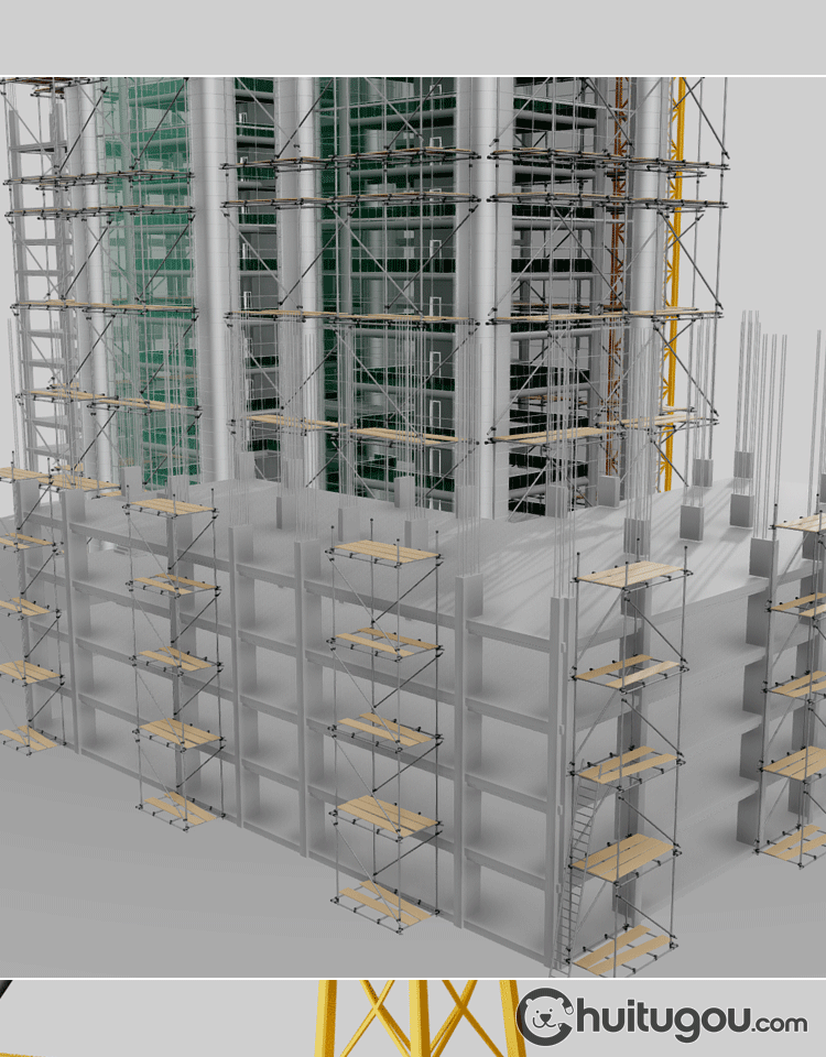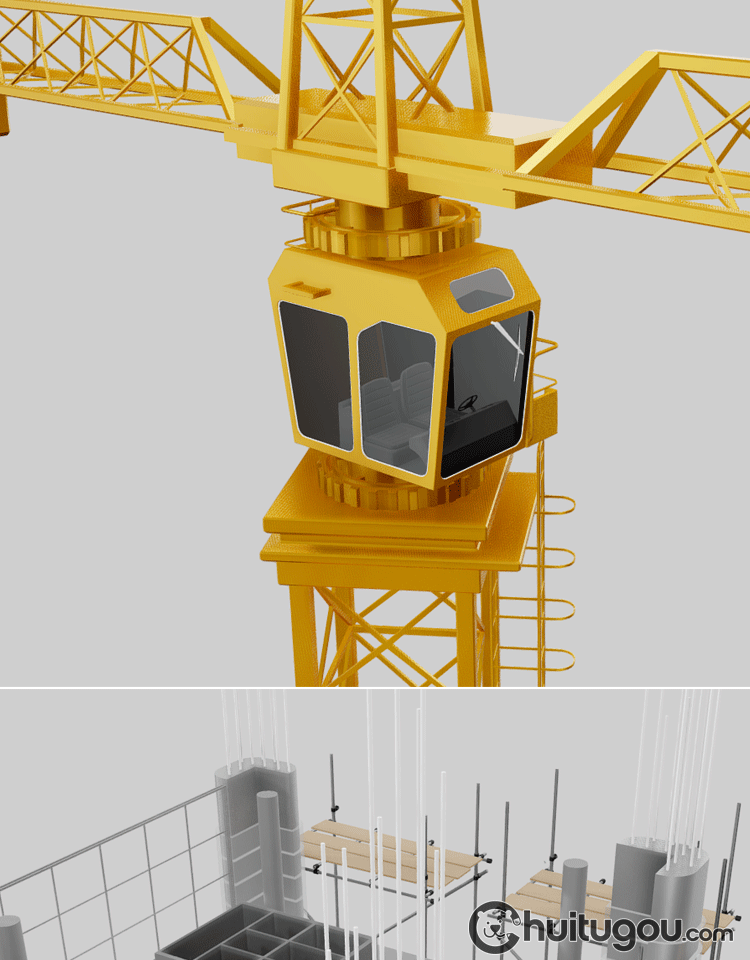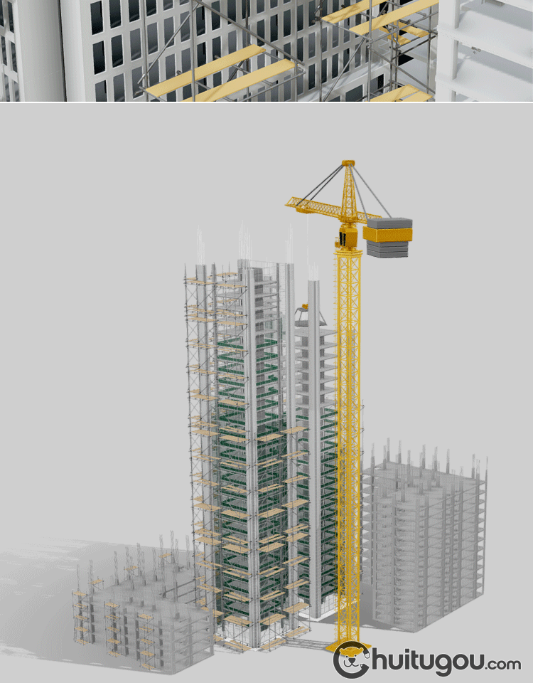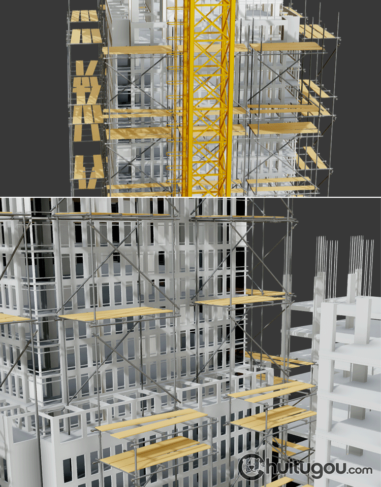 低面建筑工地3D模型Blender框架结构MAYA塔吊起重机FBX脚手架OBJ