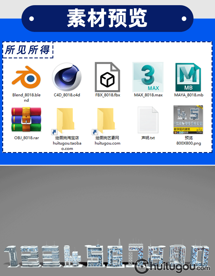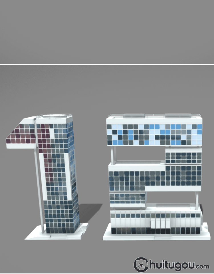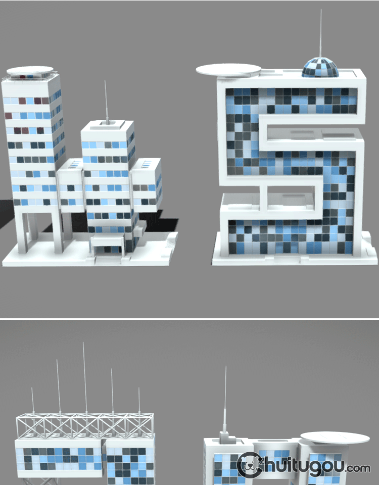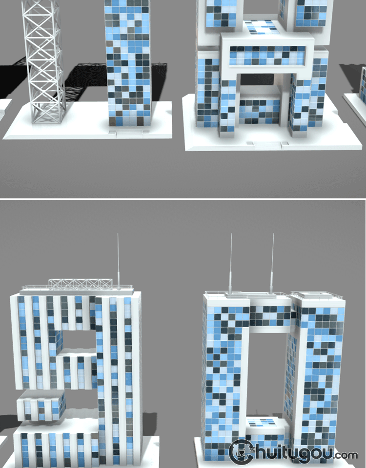 C4D阿拉伯数字造型写字楼MAX创意建筑外观设计3D素材FBX低模OBJ