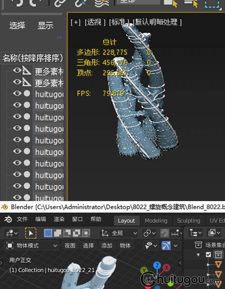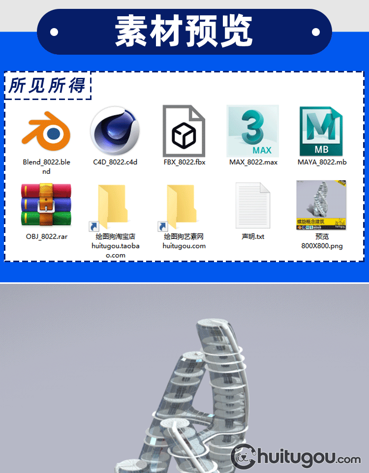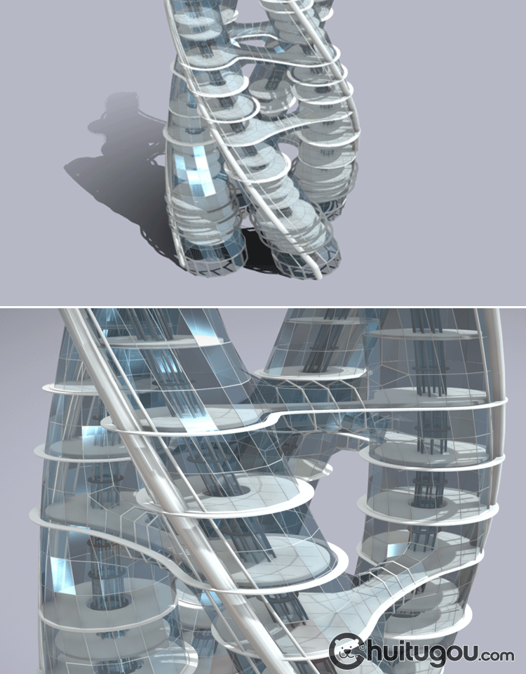 Blender螺旋概念摩天大楼C4D未来城市FBX建筑外观设计3D素材OBJ