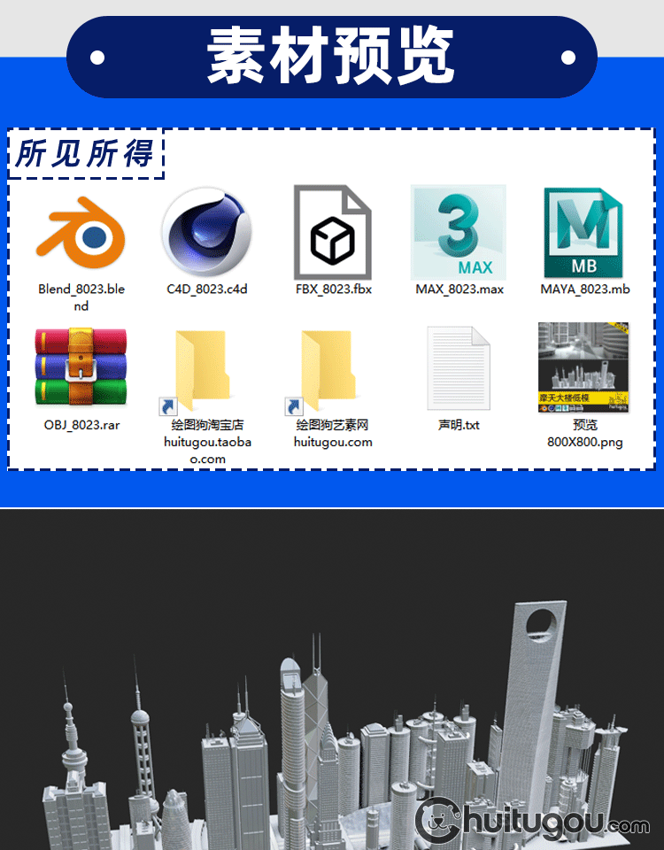地标建筑C4D圣玛丽斧东方明珠中银大厦克莱斯勒大夏街道3D素材OBJ
