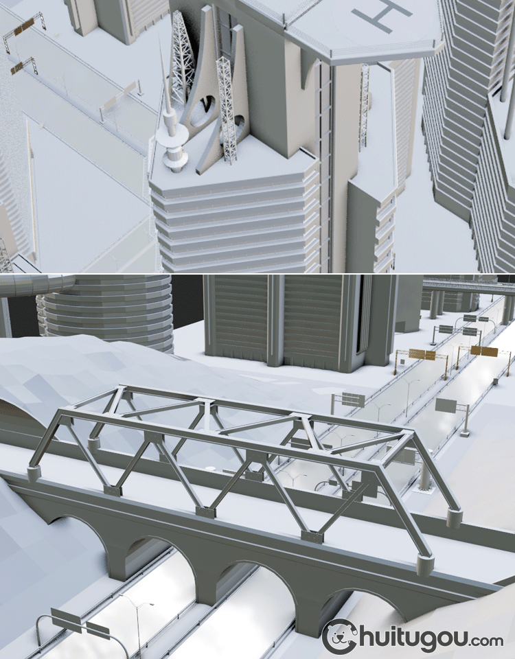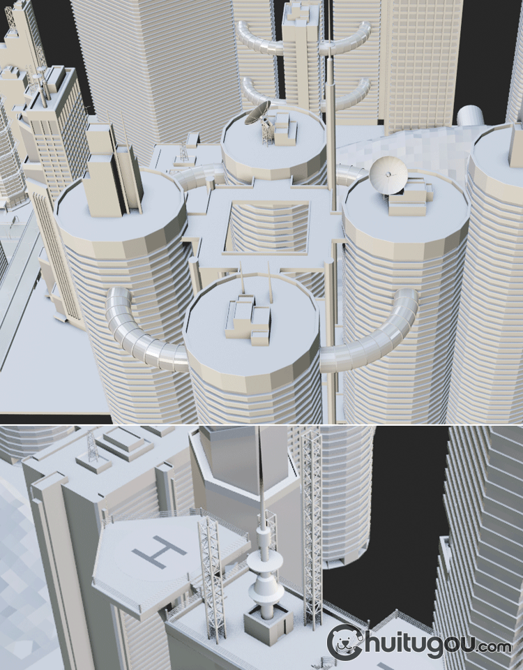 Blender螺旋概念摩天大楼C4D未来城市FBX建筑外观设计3D素材OBJ