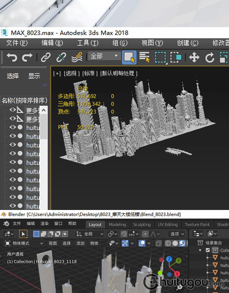 低面 香港地标建筑C4D卡通Blender中银大厦金融FBX会展中心3D素材