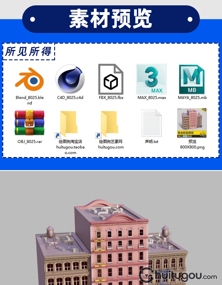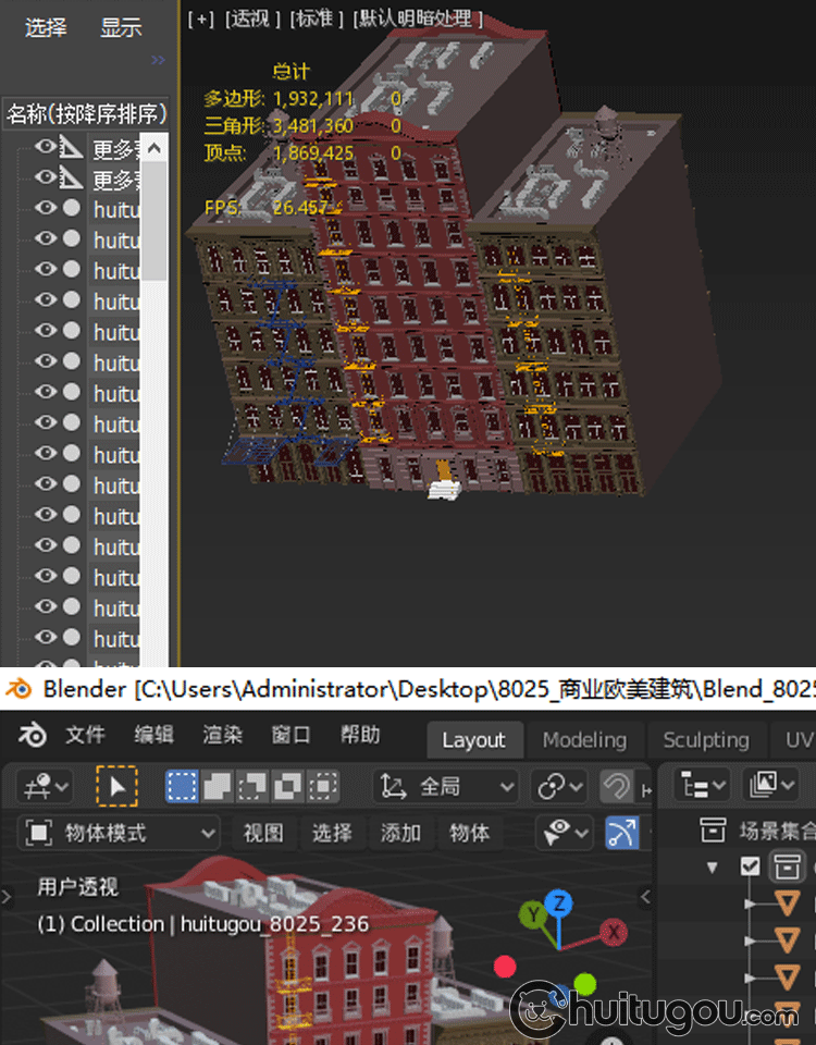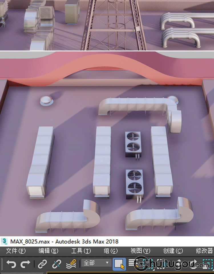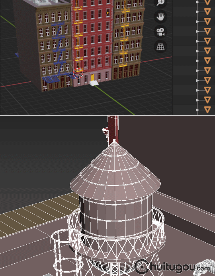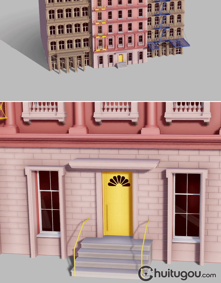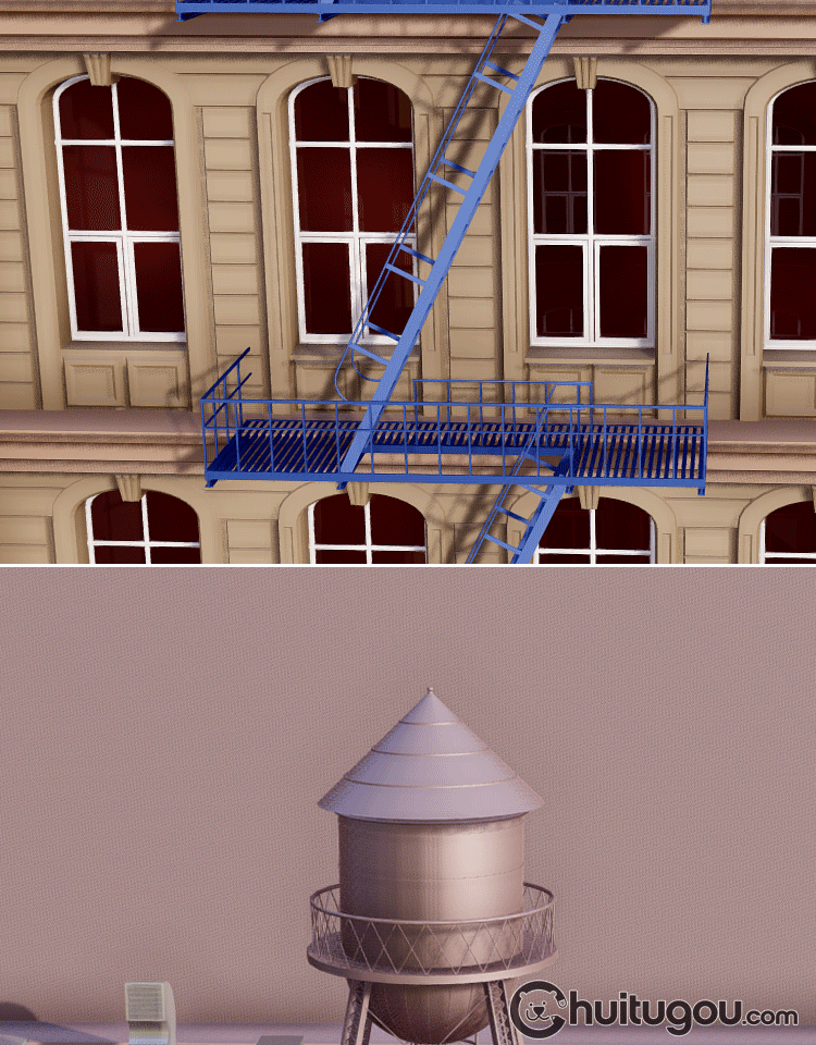 欧美商业建筑模型C4D屋顶管道水塔Blender建筑立面外观设计3D素材