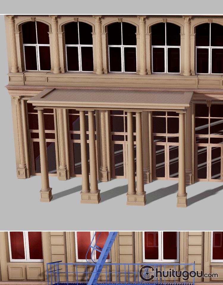 C4D经典罗马室内拱形天花廊道柱子欧式古典复古建筑设计3D素材OBJ