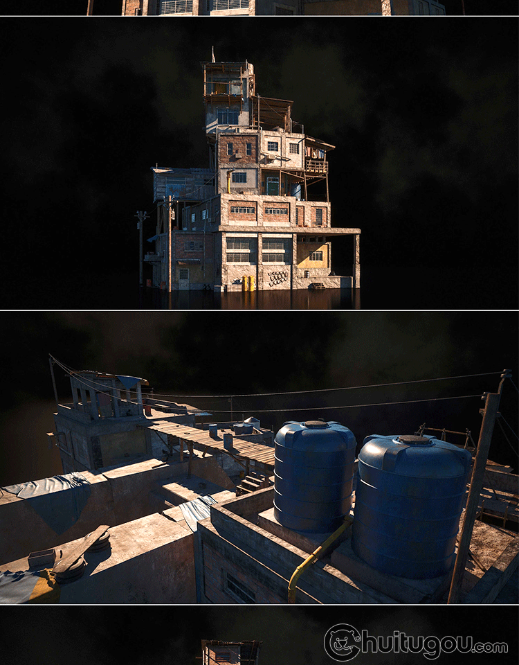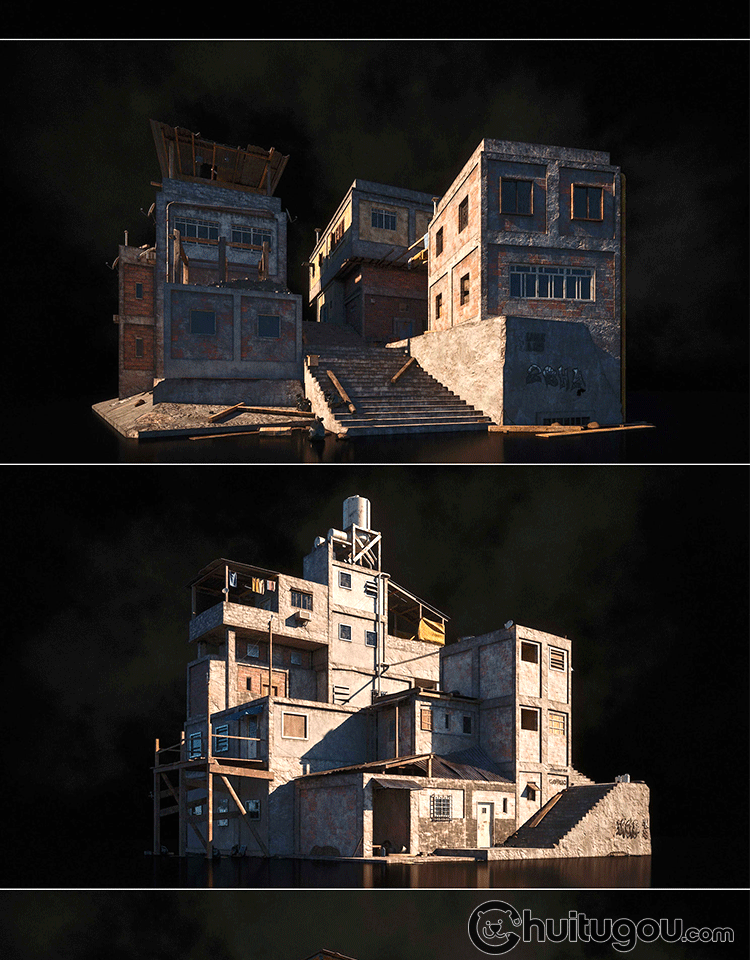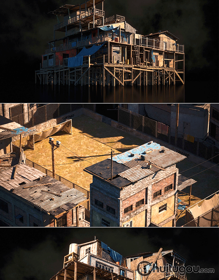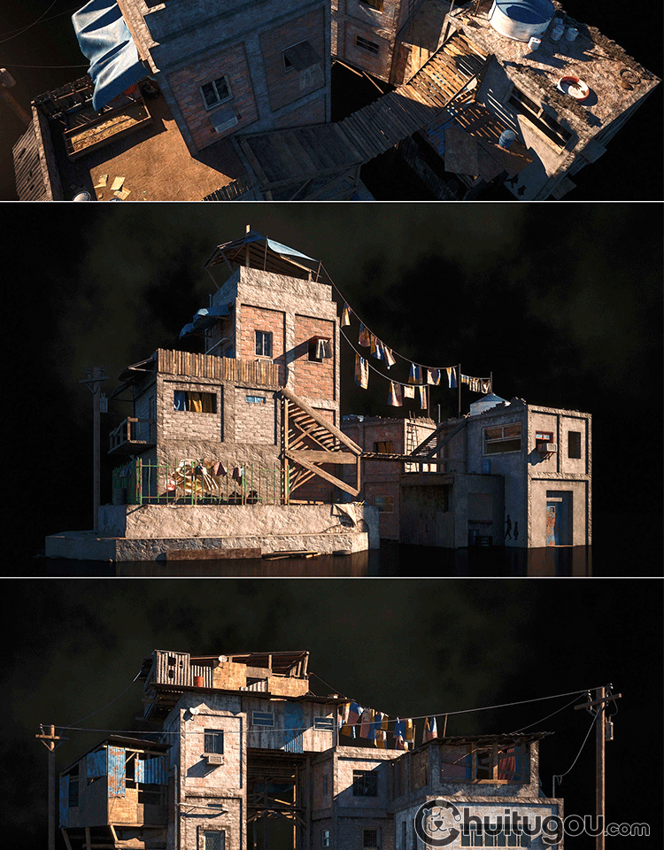 Blender写实平民窟建筑3D模型FBX格式OBJ次时代PBR模型 建模渲染