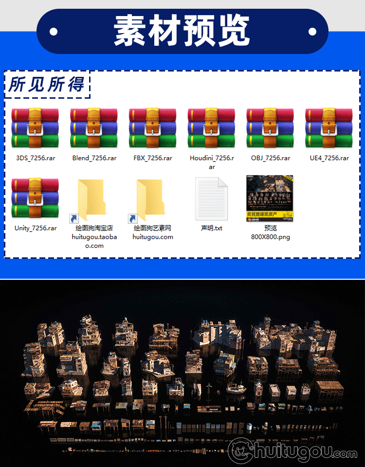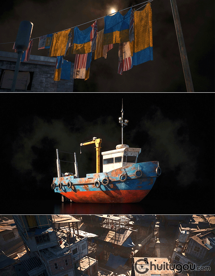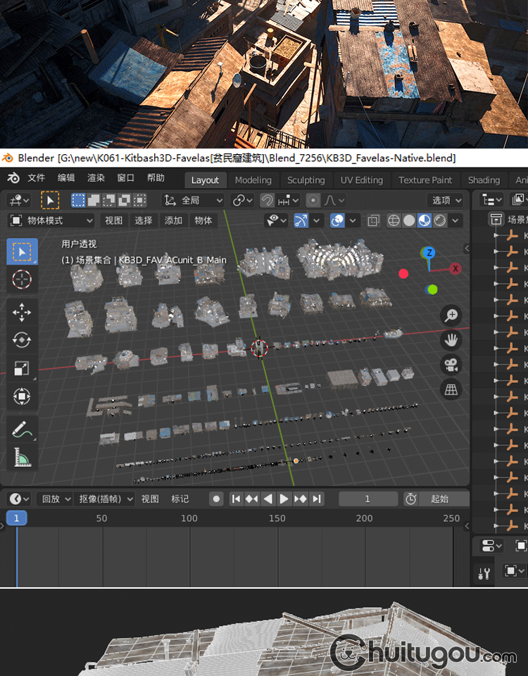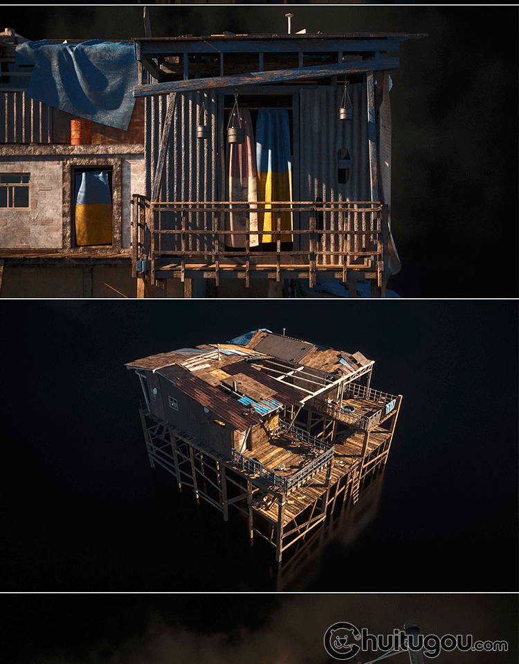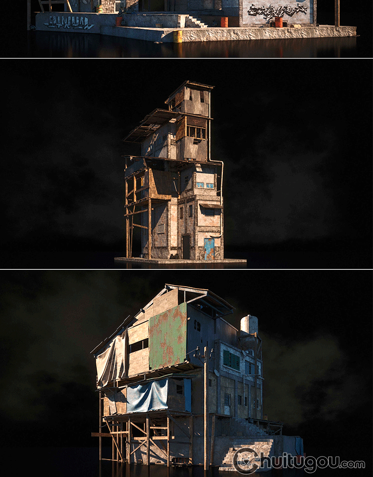 Blender写实平民窟建筑3D模型FBX格式OBJ次时代PBR模型 建模渲染