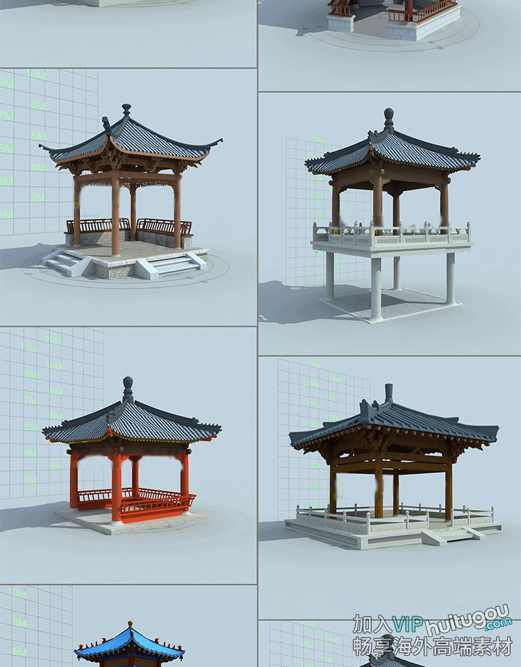 C4D模型古风亭子凉亭公园庙宇建筑fbx格式OBJ三维设计3D渲染素材