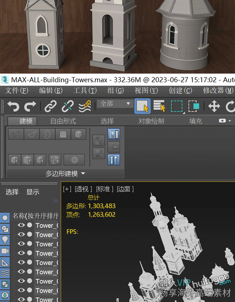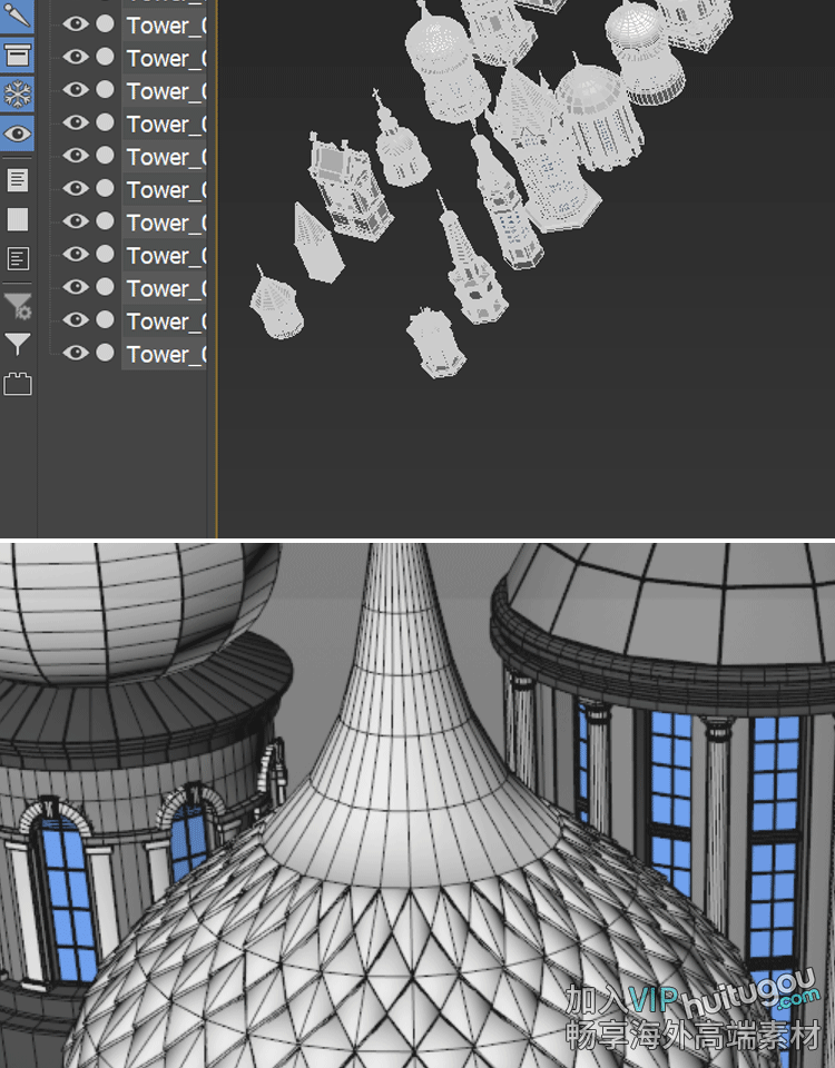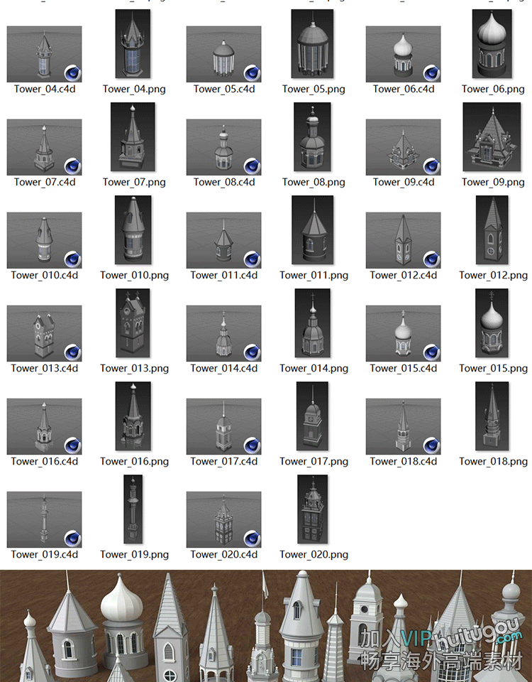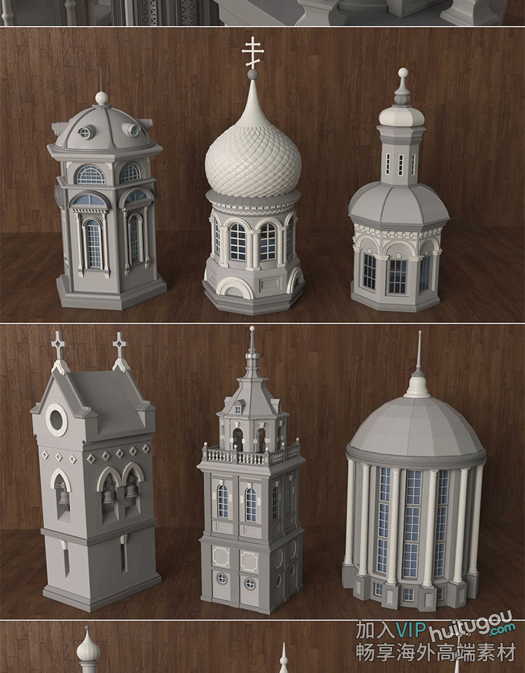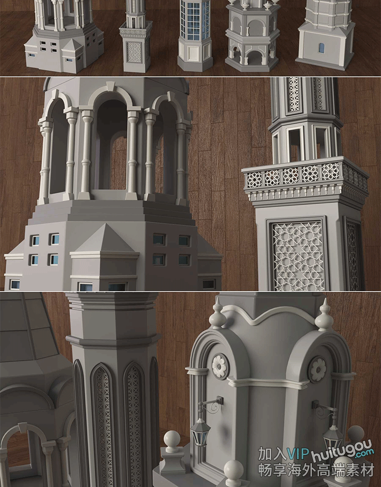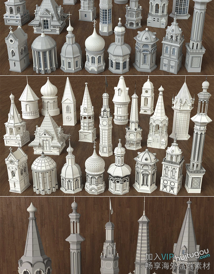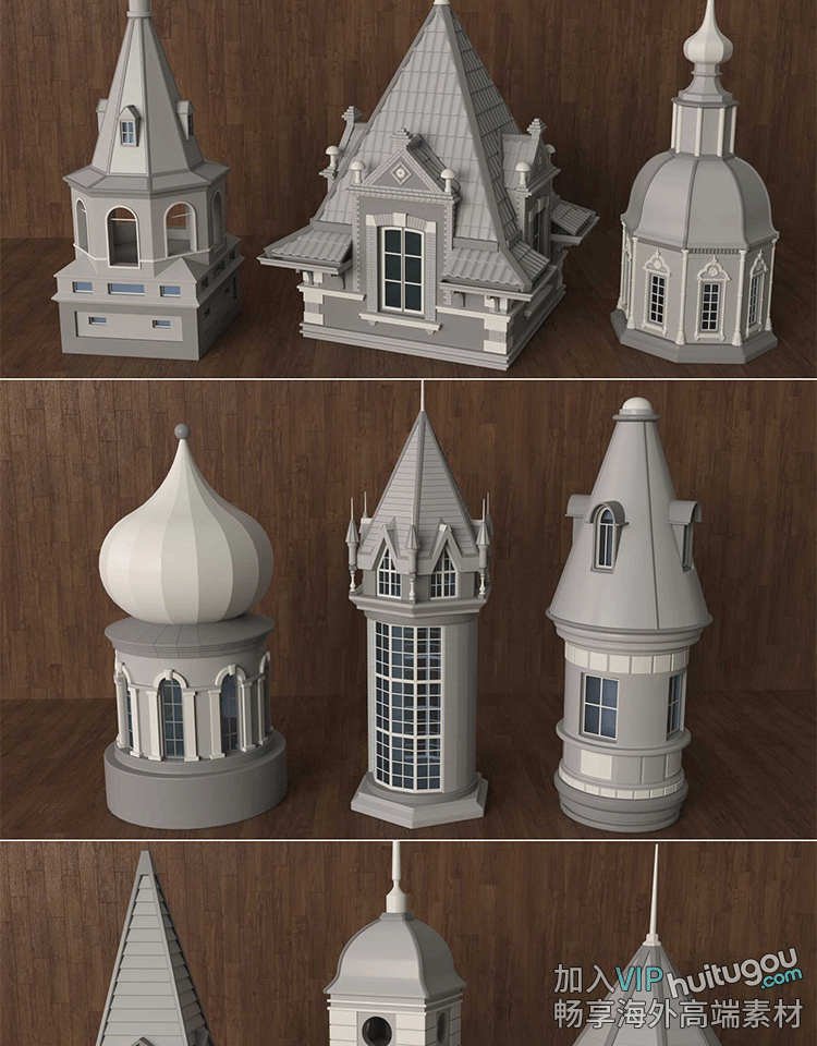 C4D欧式城堡楼顶塔顶3D模型Blender建筑模块MAYA建模渲染设计素材