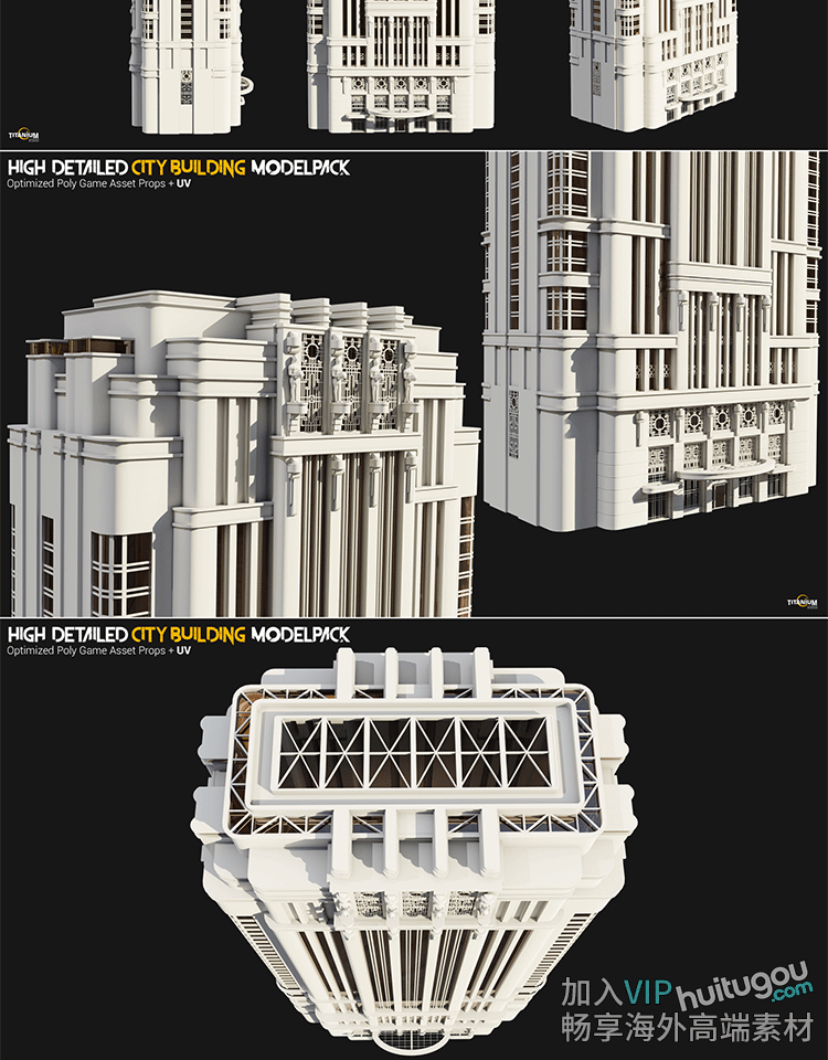 C4D未来感科幻建筑单体模型FBX摩天大楼低模OBJ建模渲染设计素材