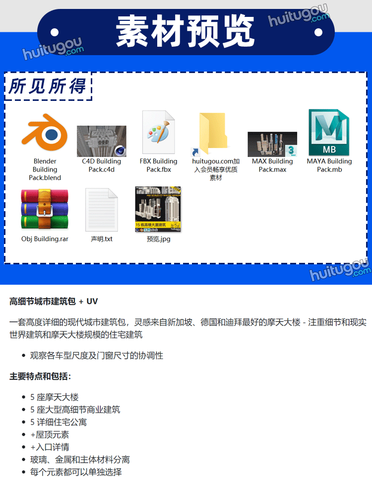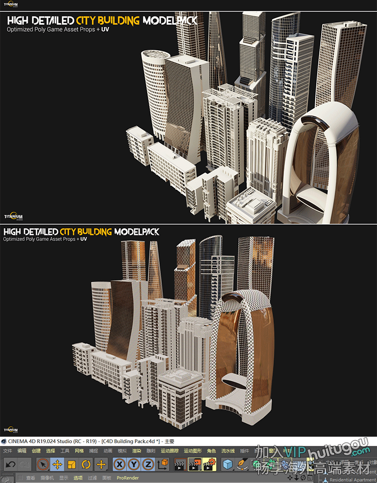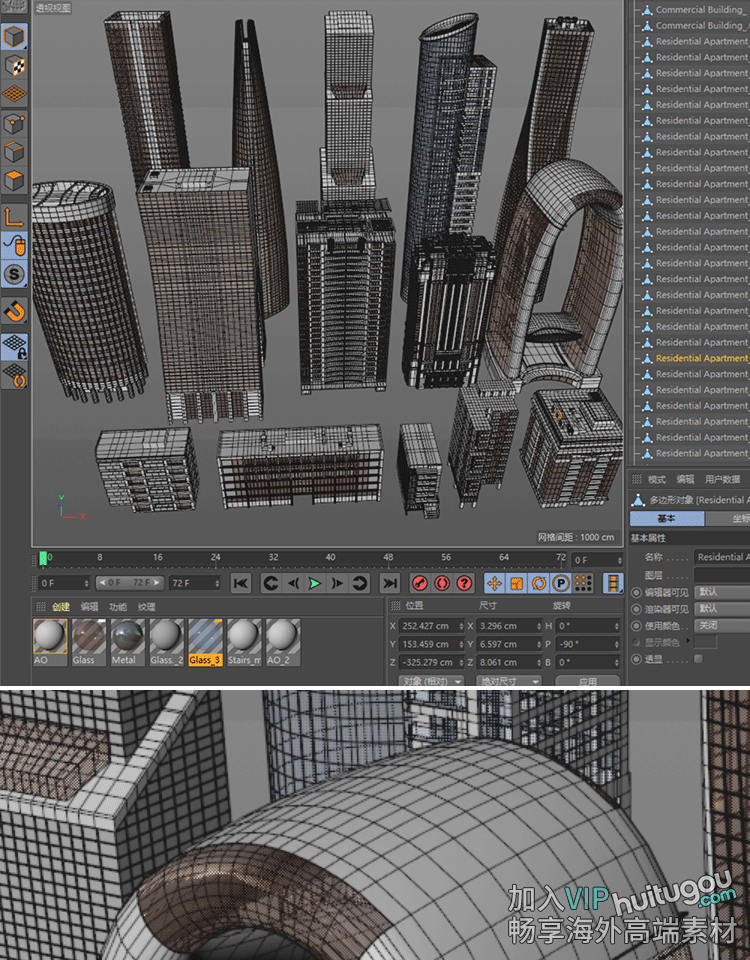 C4D现代风格城市建筑3D模型Blender摩天大楼住宅公寓商业概念建筑