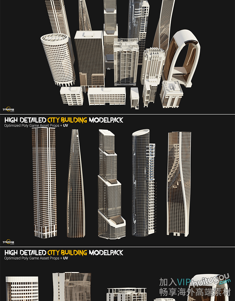 现代超级建筑群3D模型MAX摩天大楼商业建筑外观设计参考素材FBX