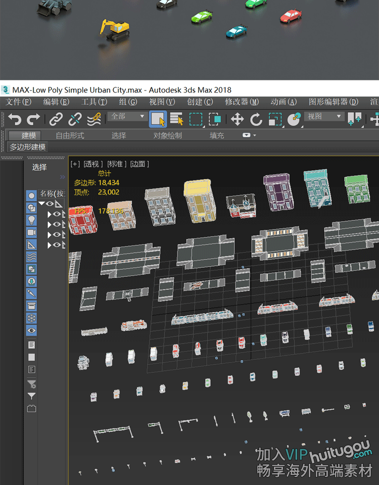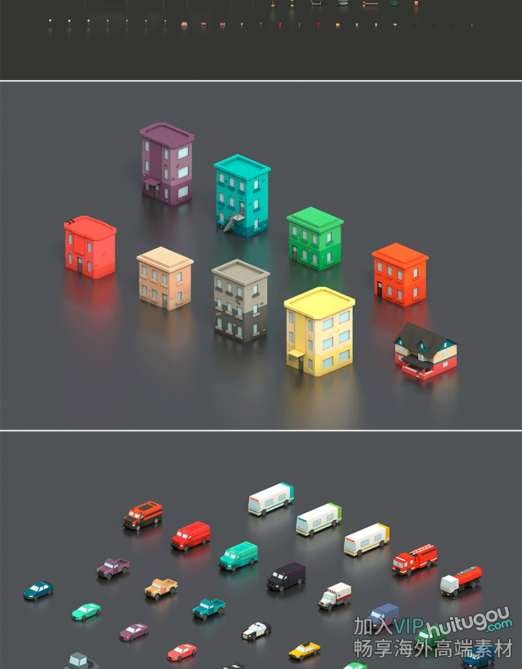 Blender卡通低面城市资产模型包C4D建筑房子马路车辆汽车路灯MAX