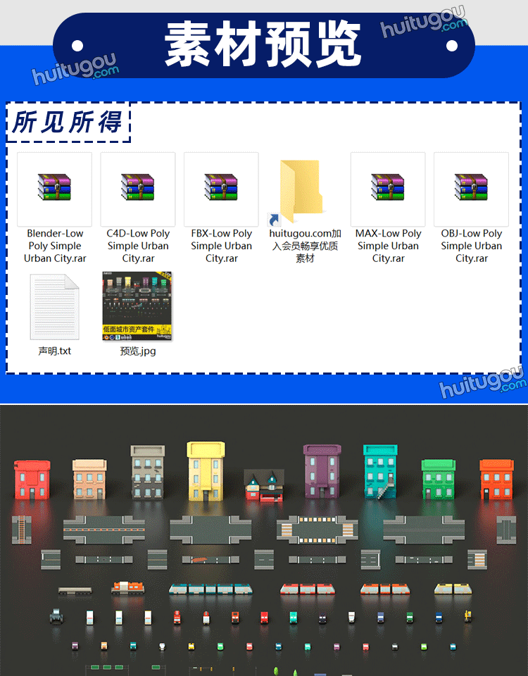 低面 城市资产包C4D建筑社区住宅商店Blender交通工具FBX汽车OBJ