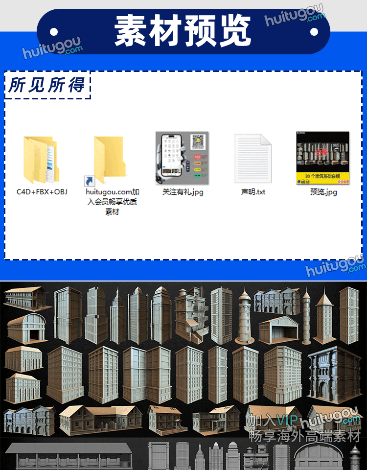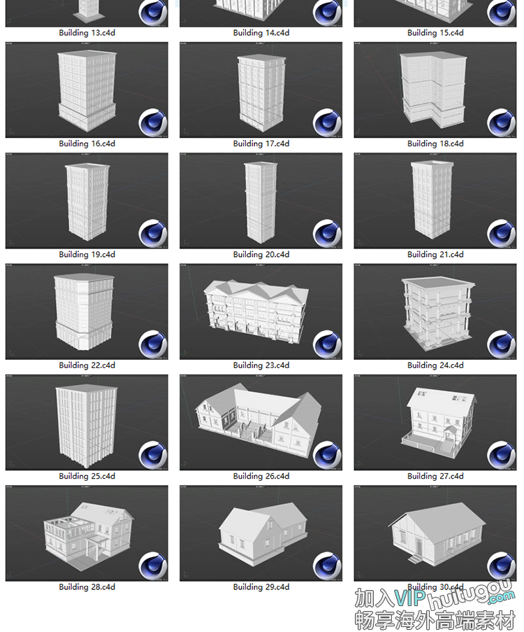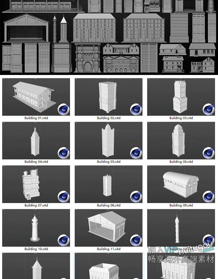 30个欧式复古建筑基础白模3D模型C4D建模渲染设计FBX素材OBJ文件
