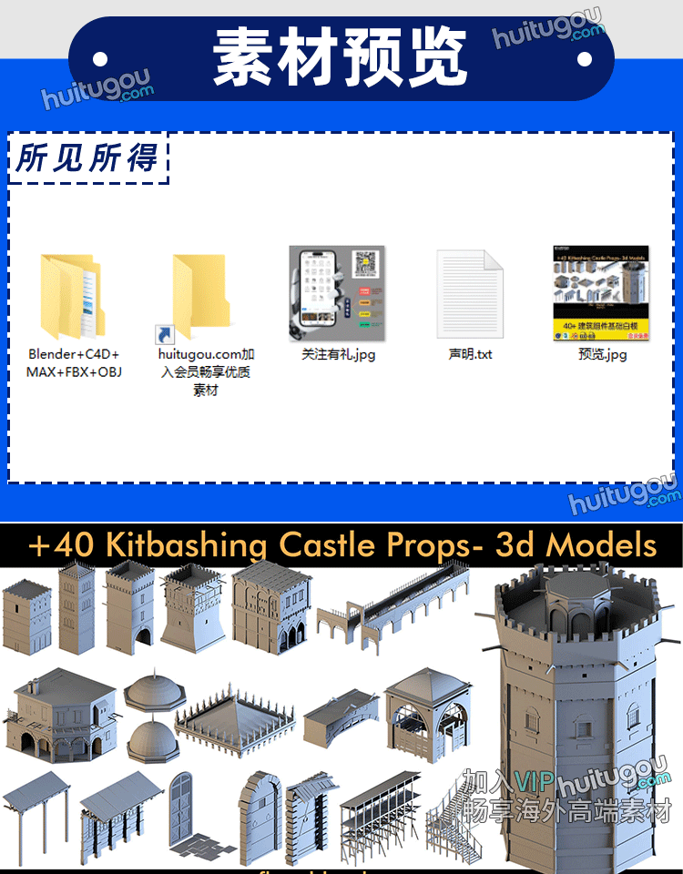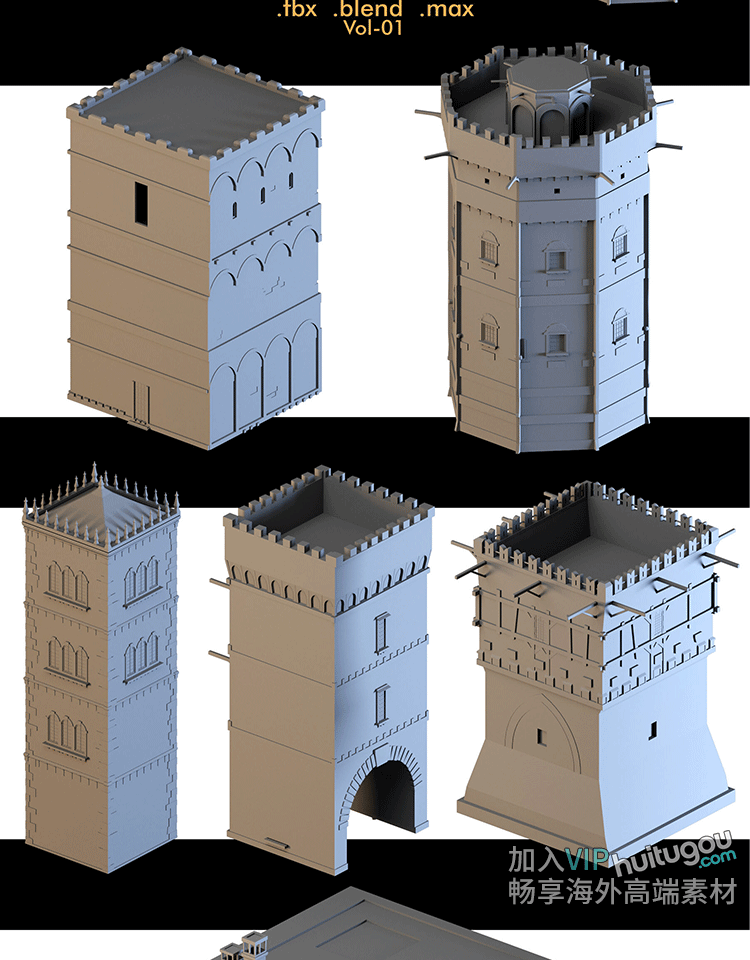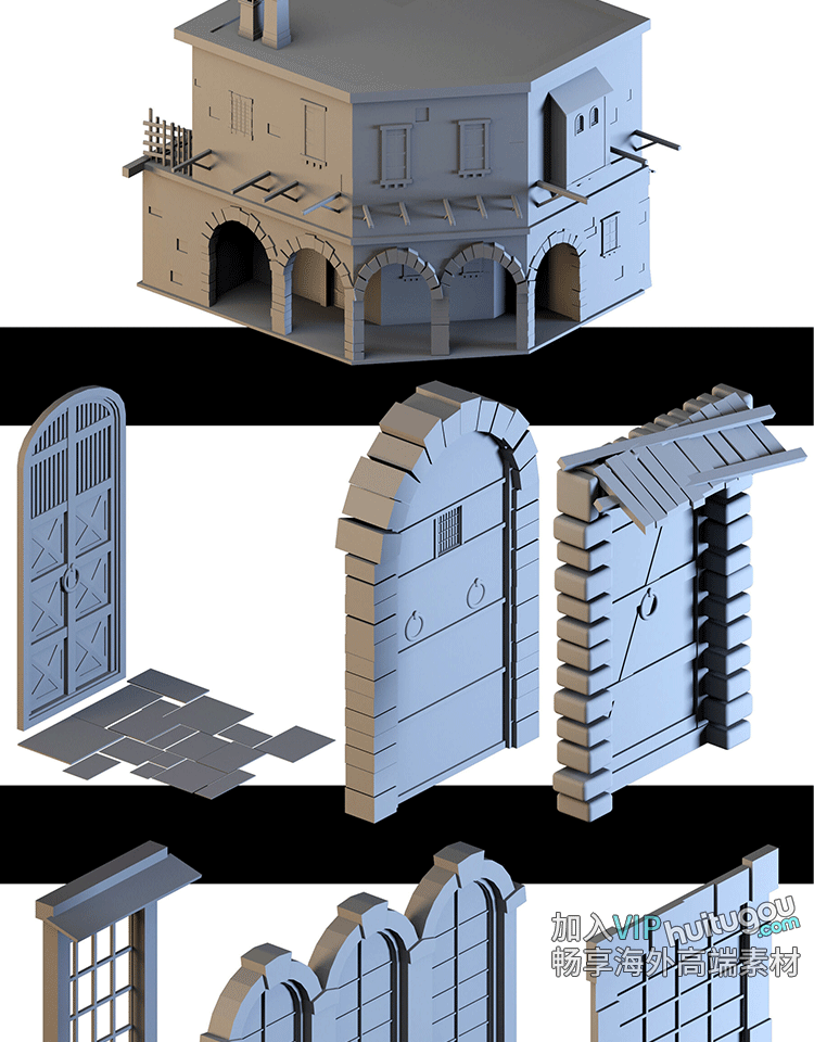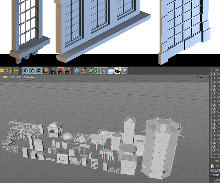 40+中世纪建筑城堡组件基础白模3D模型Blender素材C4D建模渲染OBJ