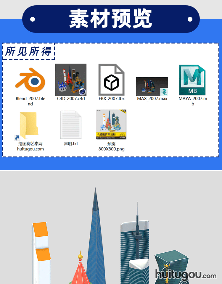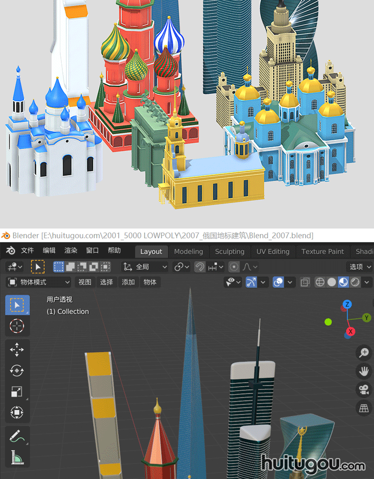 卡通 俄罗斯地标建筑C4D模型Blend克里姆林宫进化大夏FBX 3D 素材