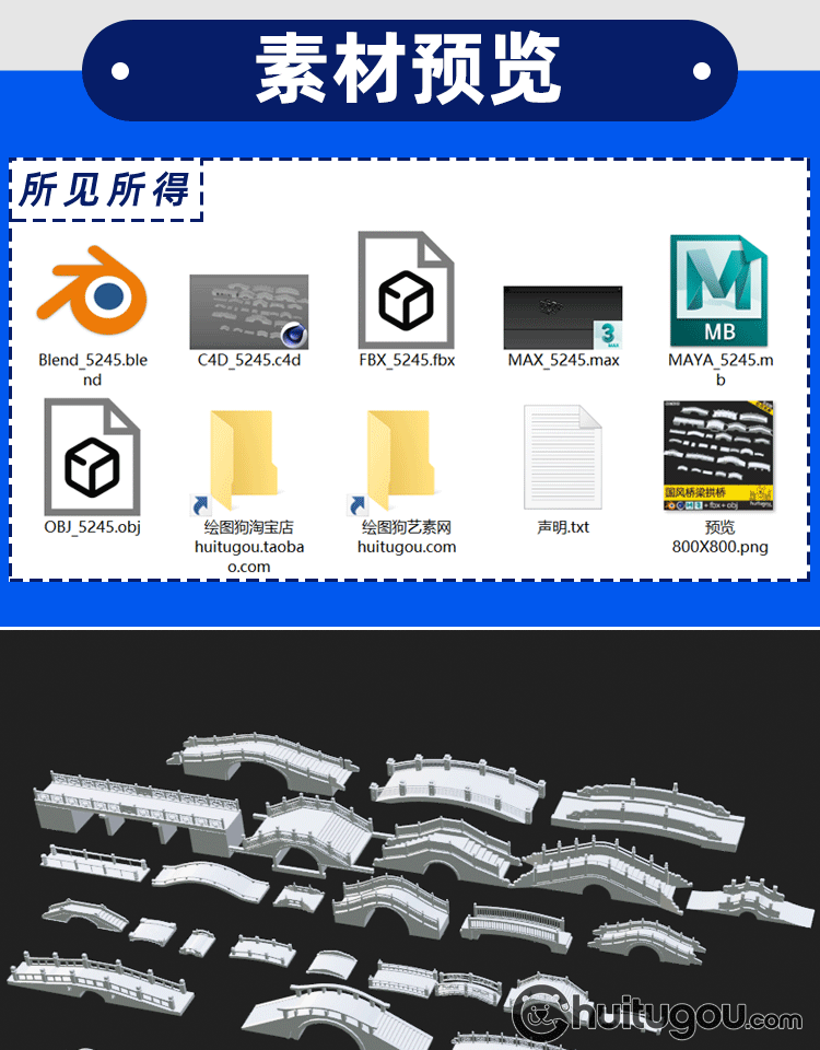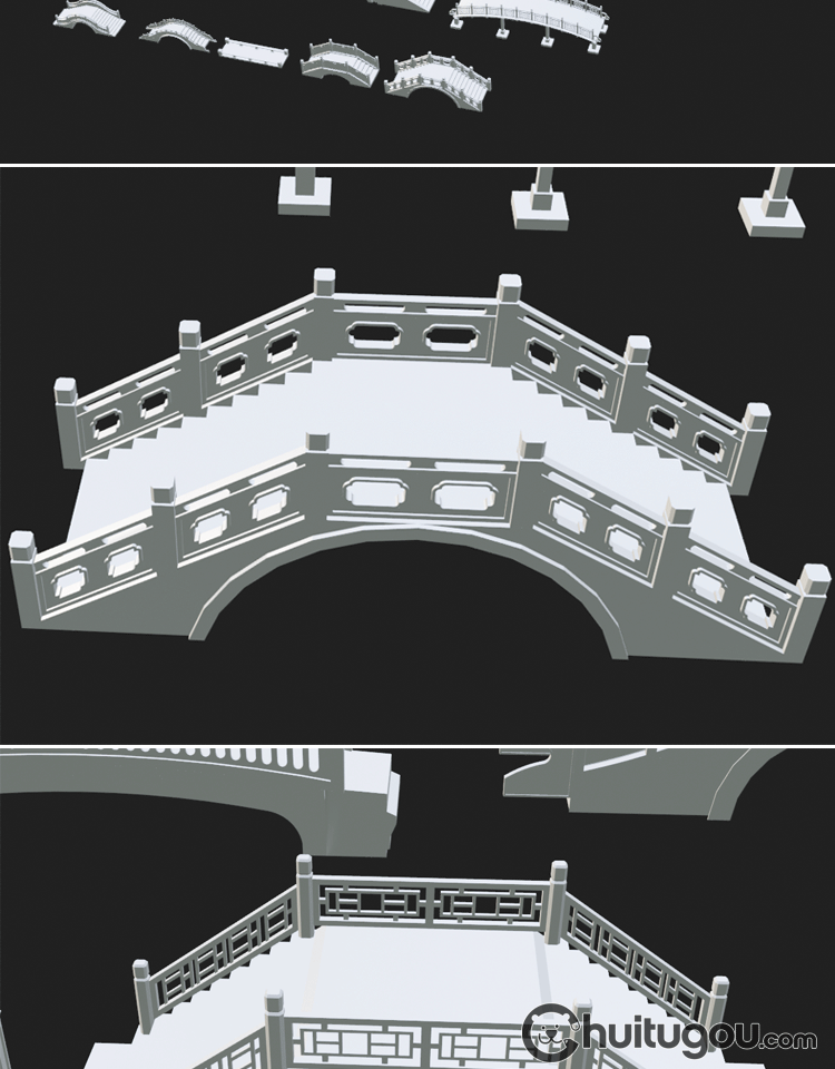 中国风桥梁模型C4D中式古桥Blend中华桥OBJ拱桥MAX素材3D文件MAYA
