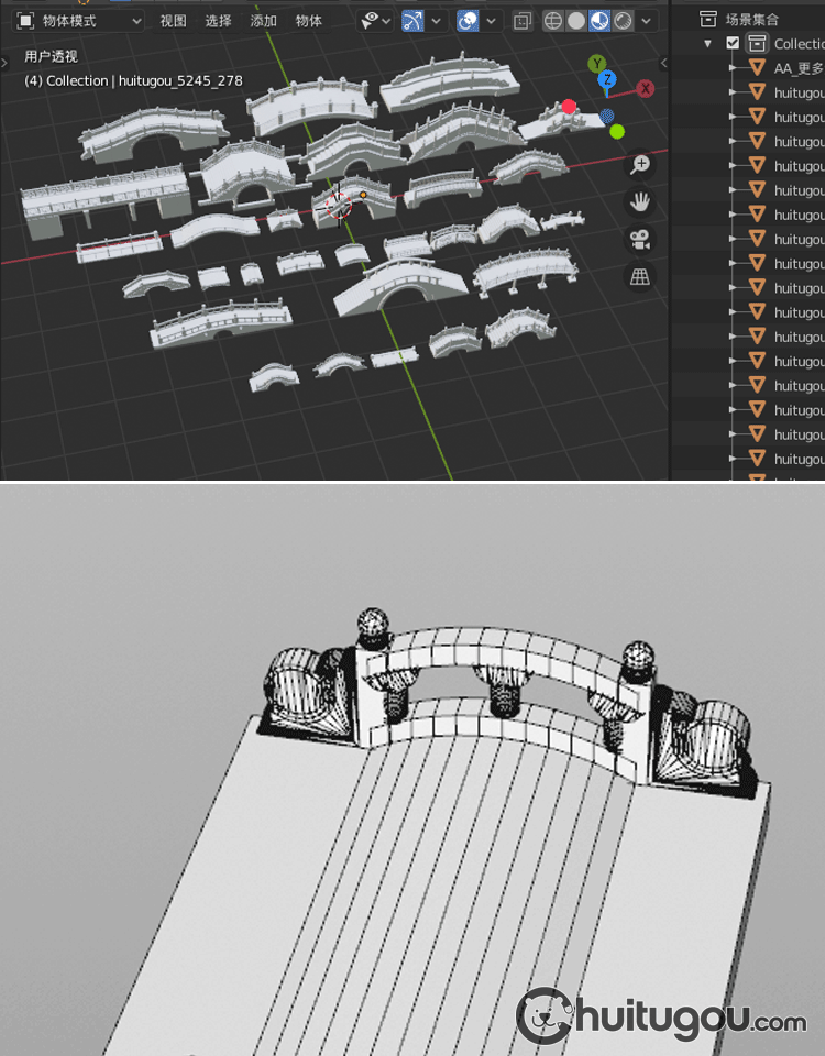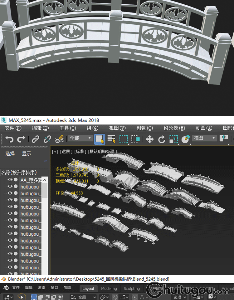 古风石雕护栏模型Blender围栏MAYA古代桥梁构件3D素材源文件OBJ