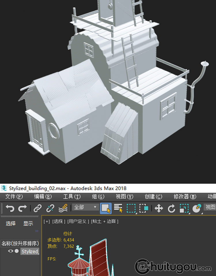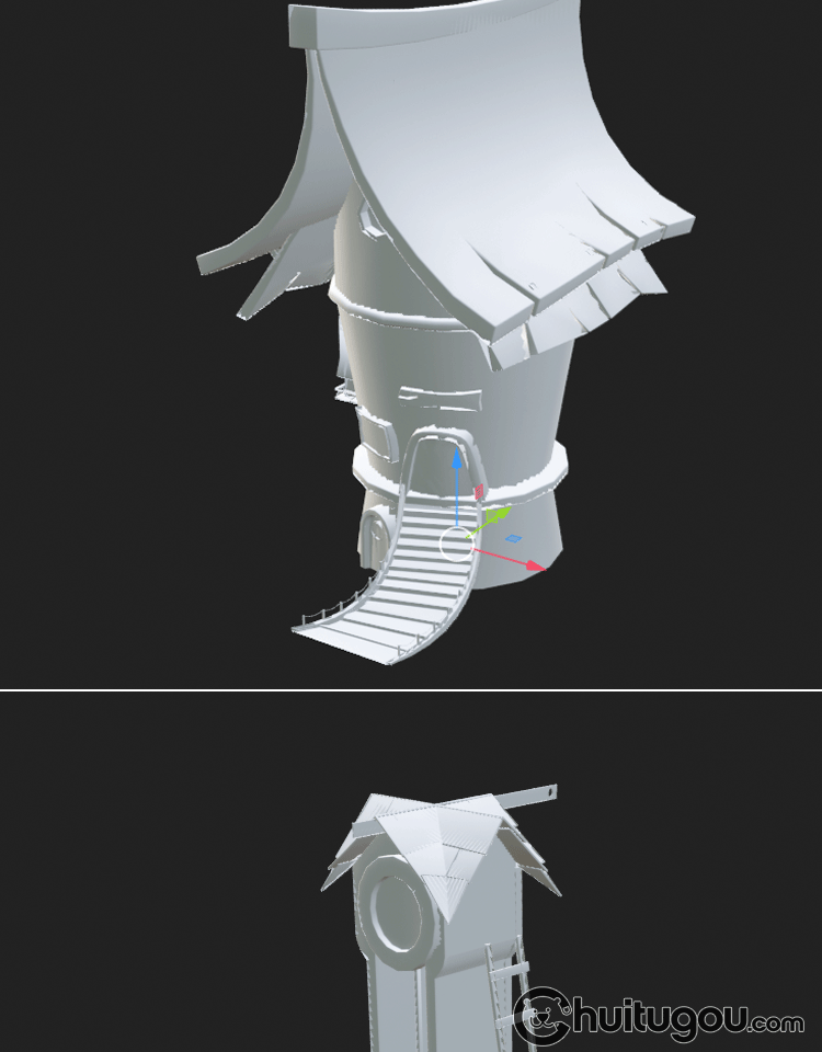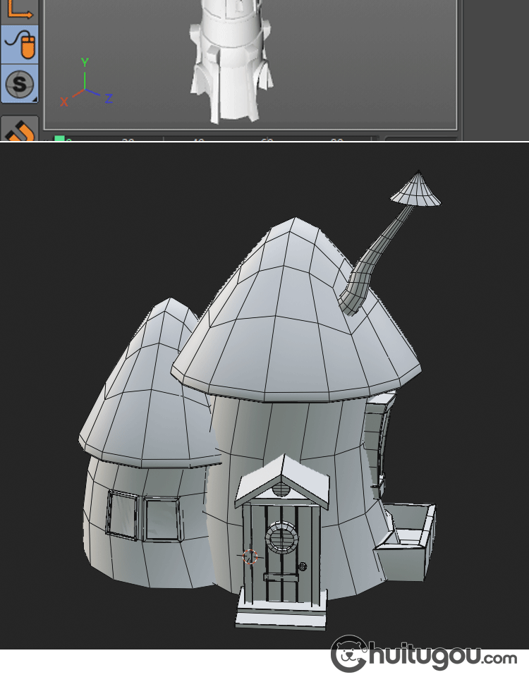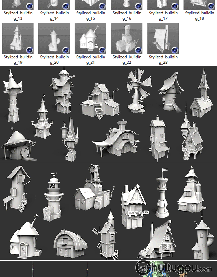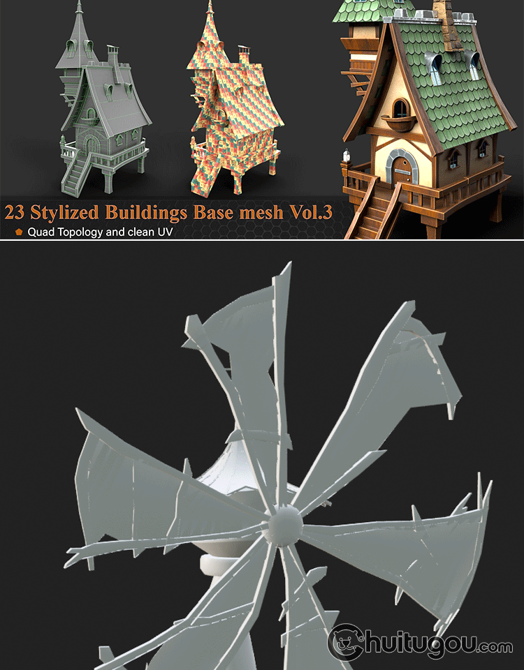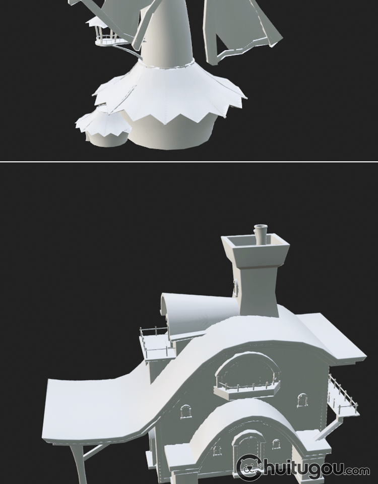 卡通3D木屋模型Blend可爱风车蘑菇小房子MAX童话建筑基础网格OBJ