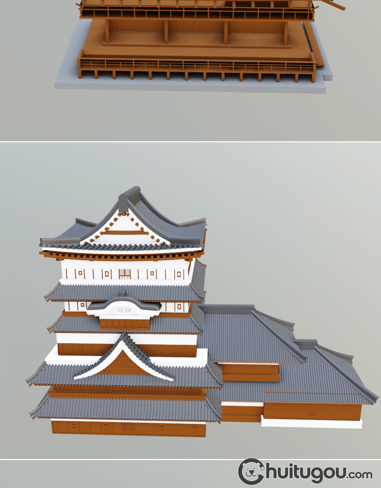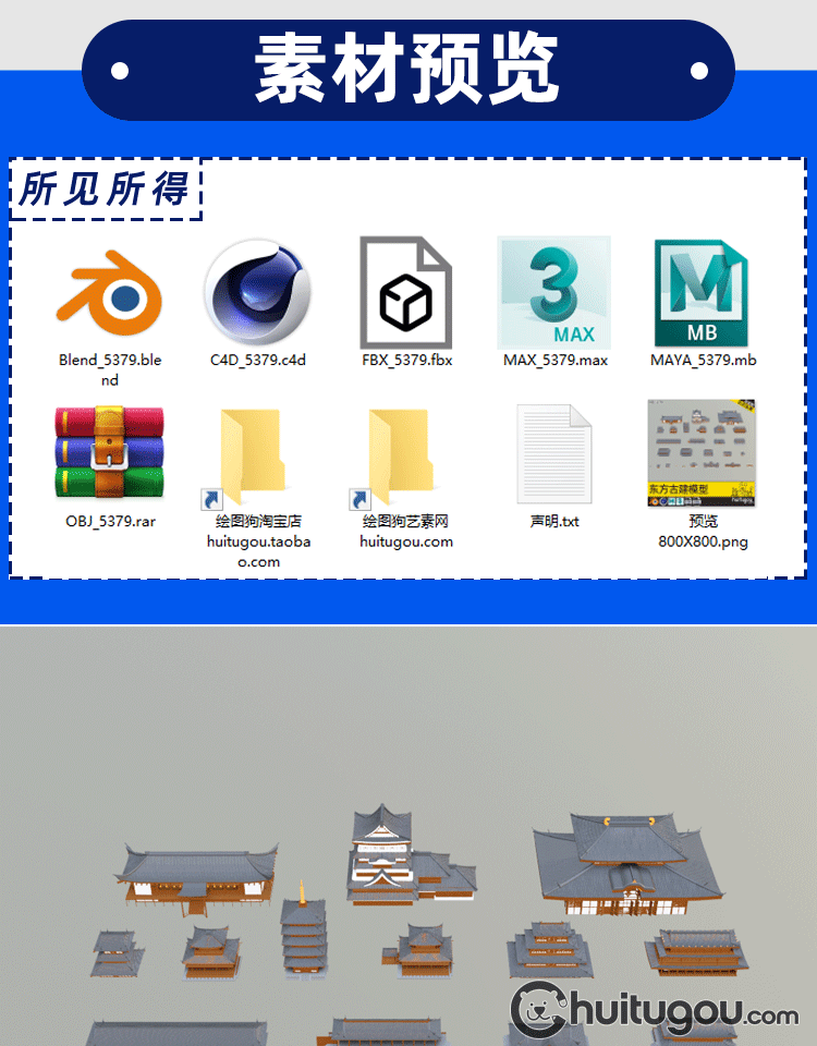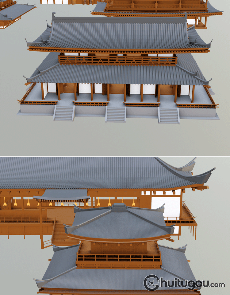 低面国风古建3D模型C4D低模建筑寺庙MAYA佛塔MAX三维设计素材OBJ